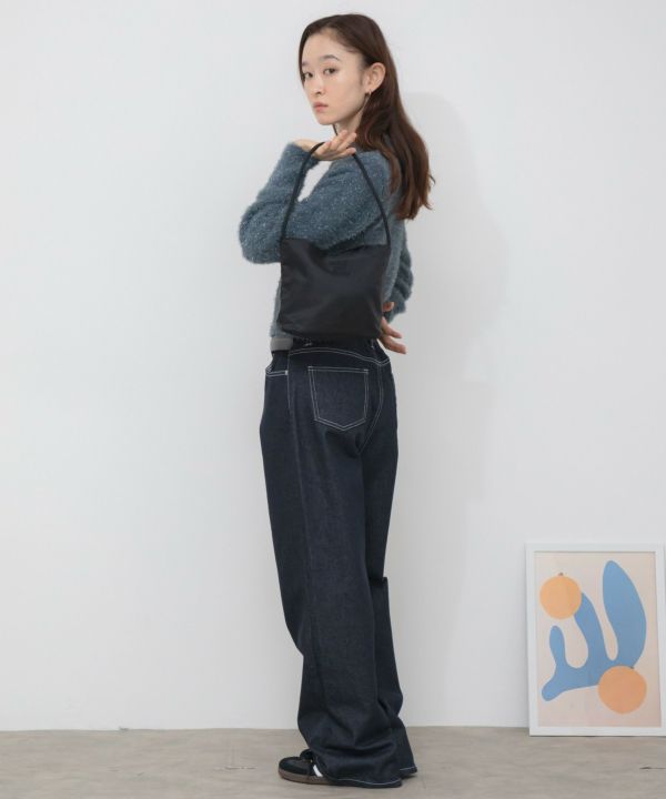 デザイン性がありながら、500mlのペットボトルや財布、スマホなど持ち歩きたいものをまとめて入れられる容量でたっぷり入ります。