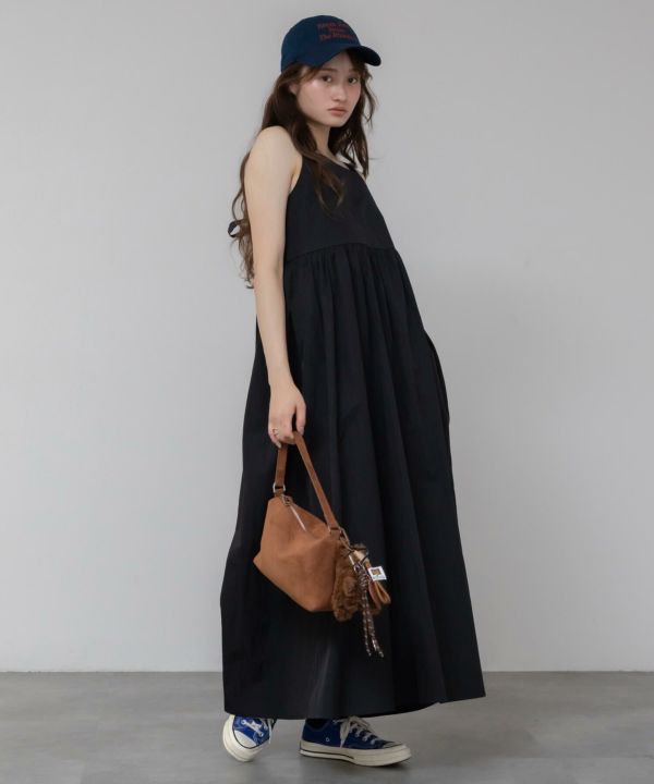 ブラックはフェミニンなデザインにやや張り感のあるナイロン素材のバランスで甘過ぎないモードな印象に仕上げています。