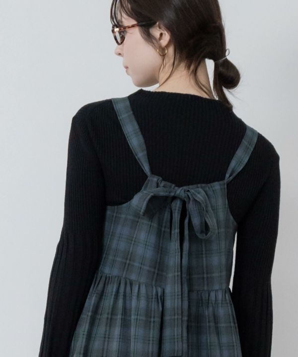 背中のリボンが大人可愛い雰囲気に仕上がっています◎背中のリボンで長さの調節ができるのでお好みの長さに合わせて着用可能です。