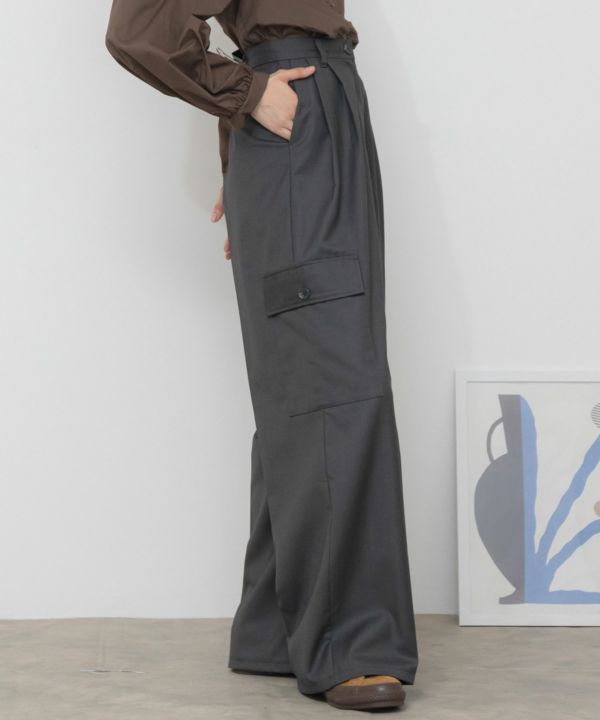 ウールライクなツイル生地とセンタープレスで仕立てたきれいめカーゴパンツ。