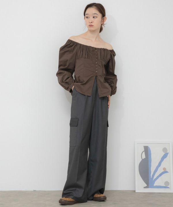 トレンドのカーゴポケットの存在感が旬なルックに。