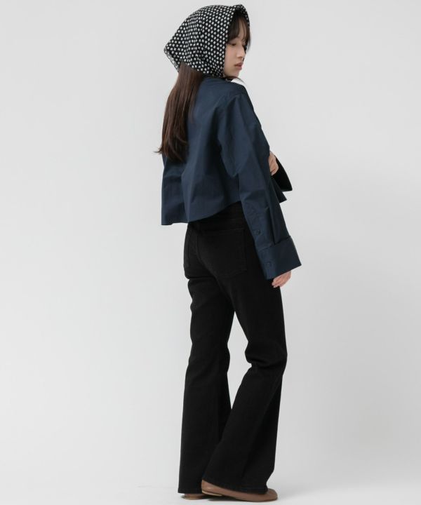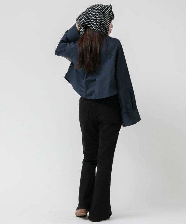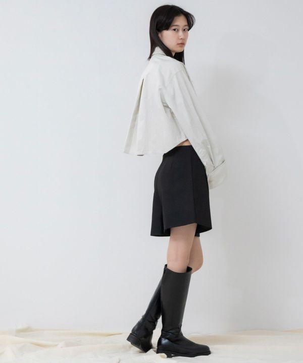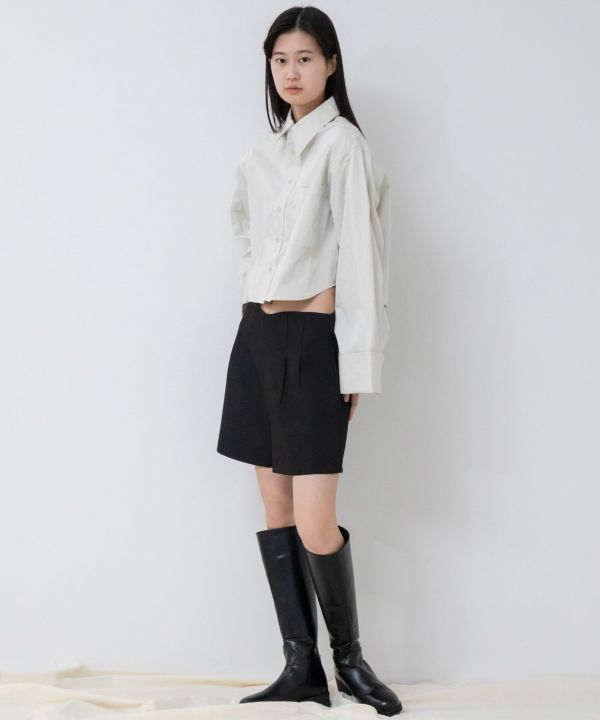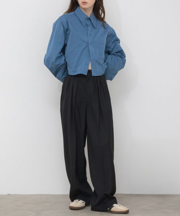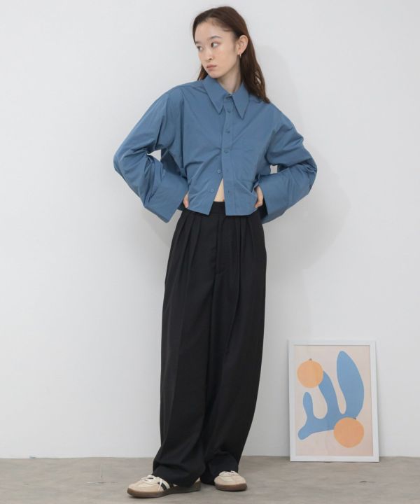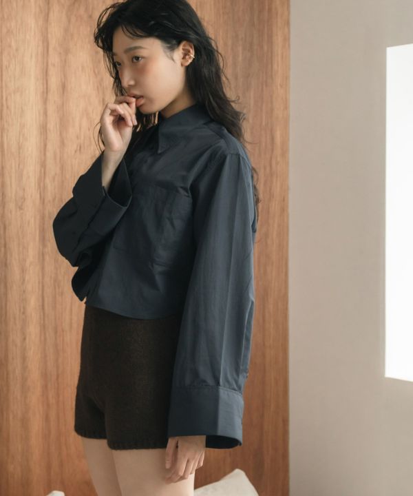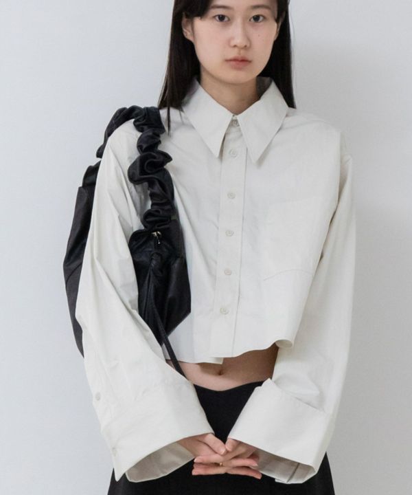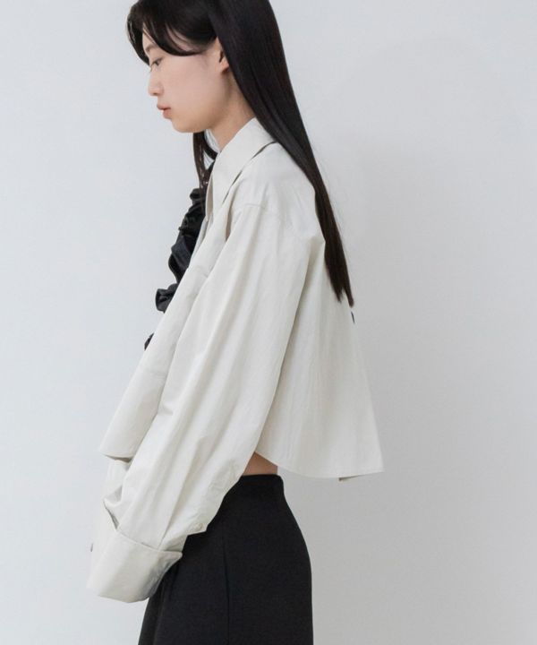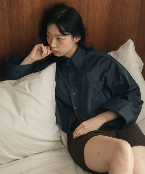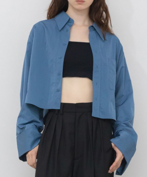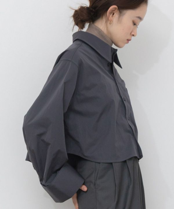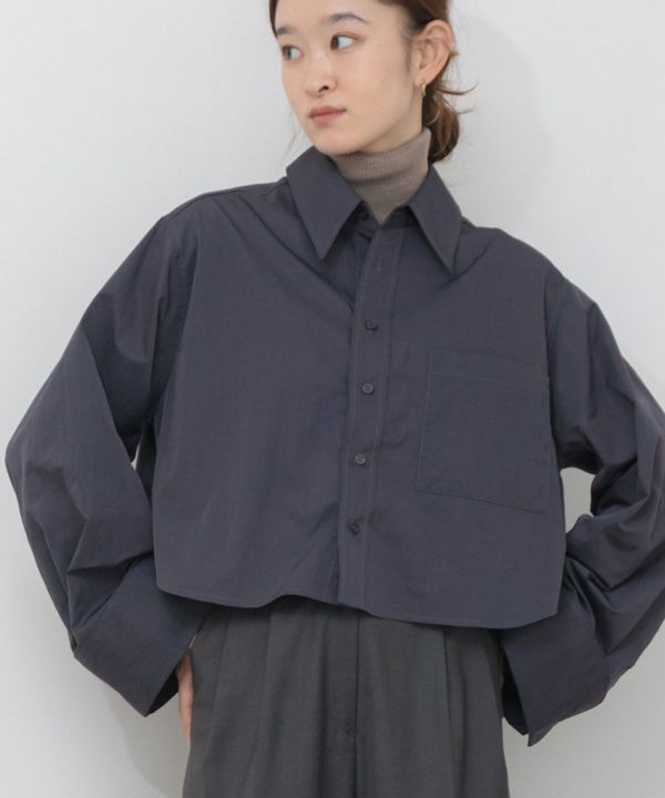 定番のシャツに遊び心をプラスしたビッグシルエットが特徴的なクロップドシャツ。