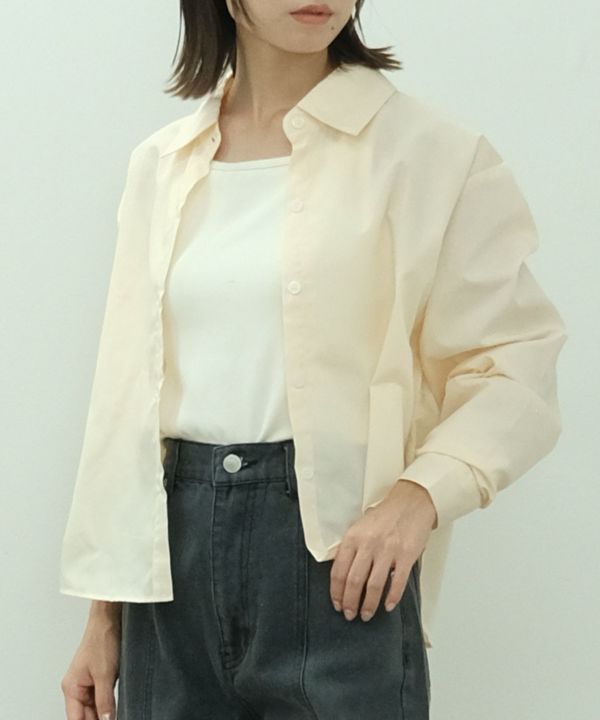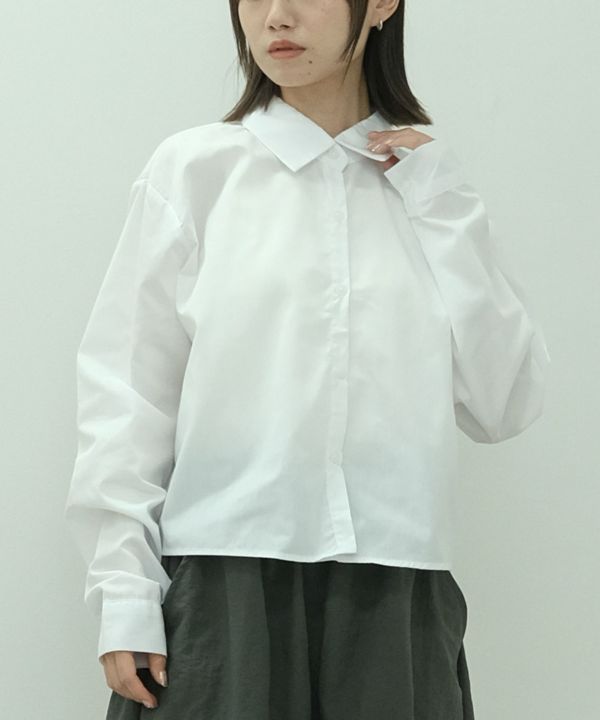 程よい張り感があるサラッとした素材を採用した、通年で着られるシャツブラウス。