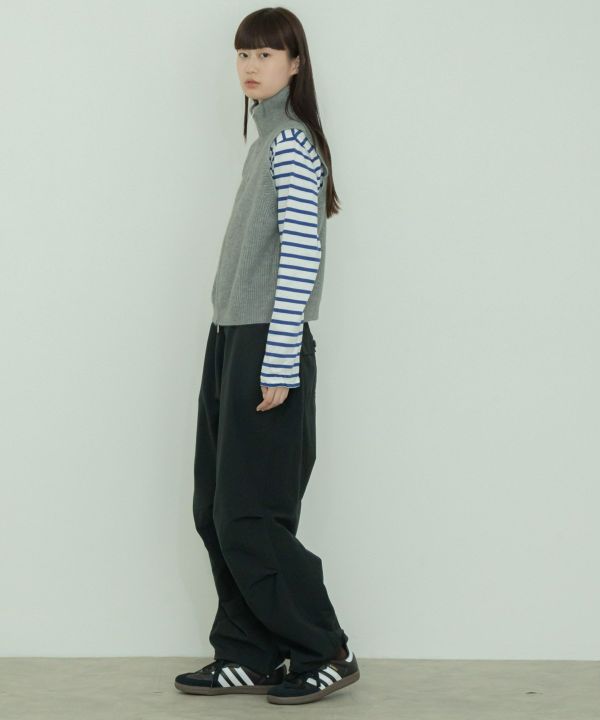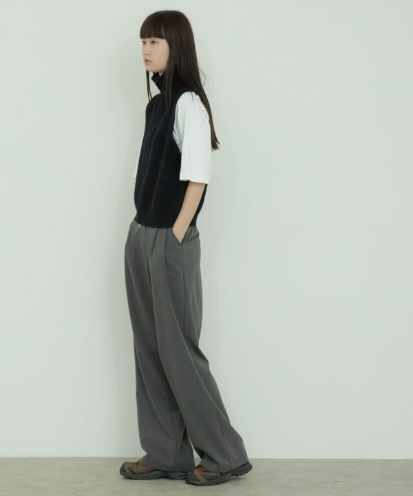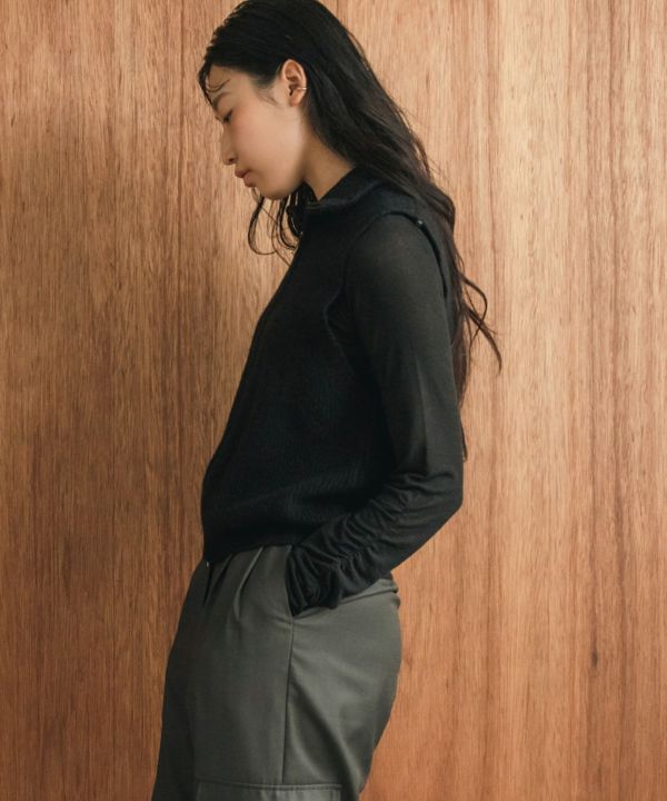 ゆとりのあるアームホールなので寒くなってきたらスウェットなど厚みのあるトップスを重ねて着用することも可能です。