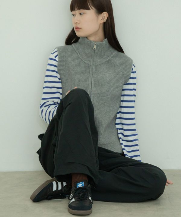 今年らしい季節感を取り入れたコーディネートに仕上がるニットベスト。