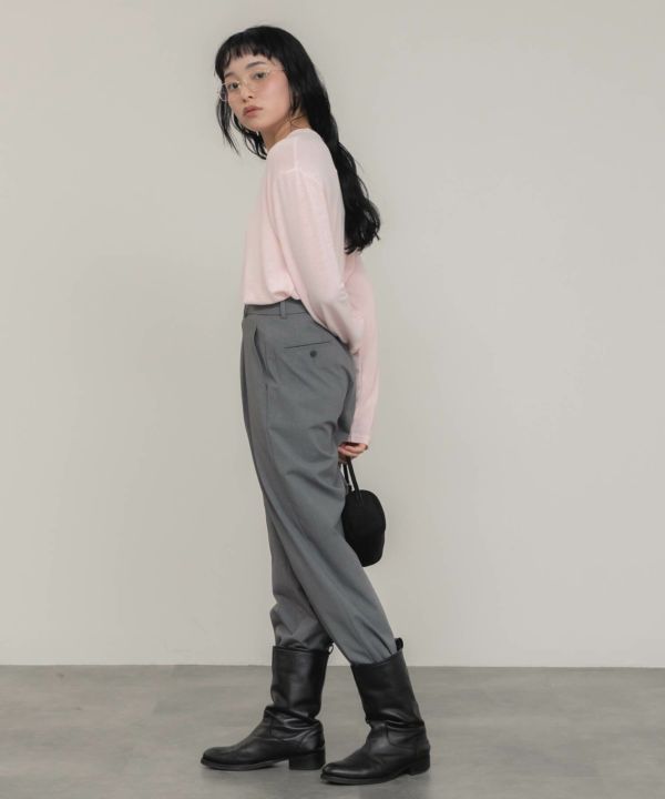 ロンTのように合わせるボトムを選ばない万能アイテムですが絶妙な空き具合のネックラインとしなやなかニット素材がカジュアルにもきれいめにも合わせやすいアイテムです。