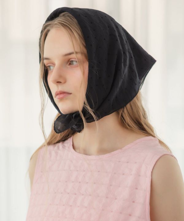 シンプルながらも品のあるマイクロドット柄が魅力のスカーフ。