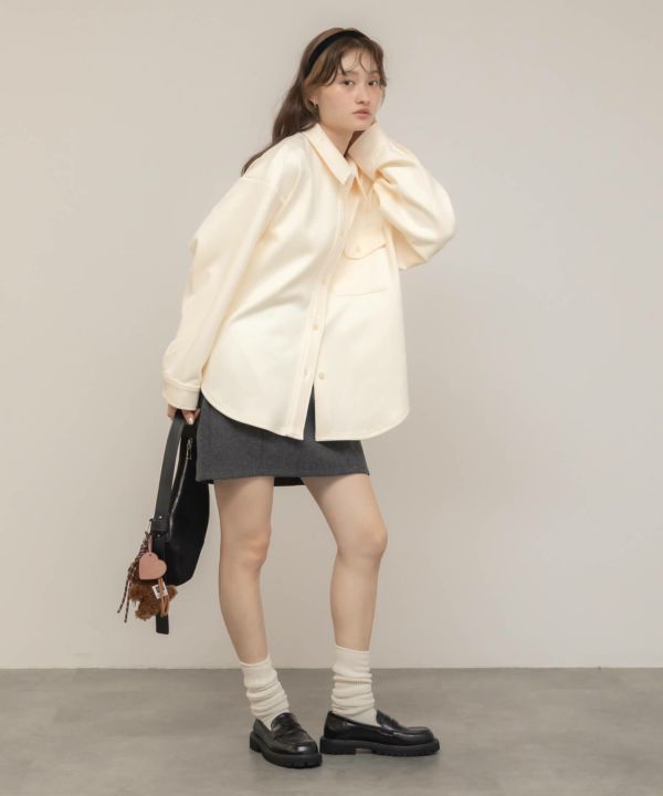 ミニスカートに白ソックスを合わせれば韓国っぽさが際立ち、ちょっぴりモードなバランスに。