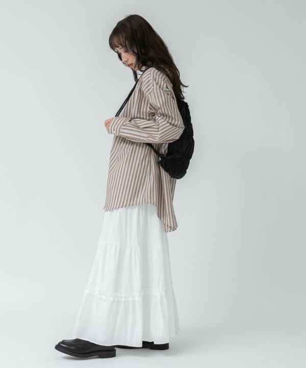 甘さを抑えたフレンチガーリーな着こなしには、コットンレースのチュニックやブラウスにロングスカートを合わせて、ナップサックをプラス。