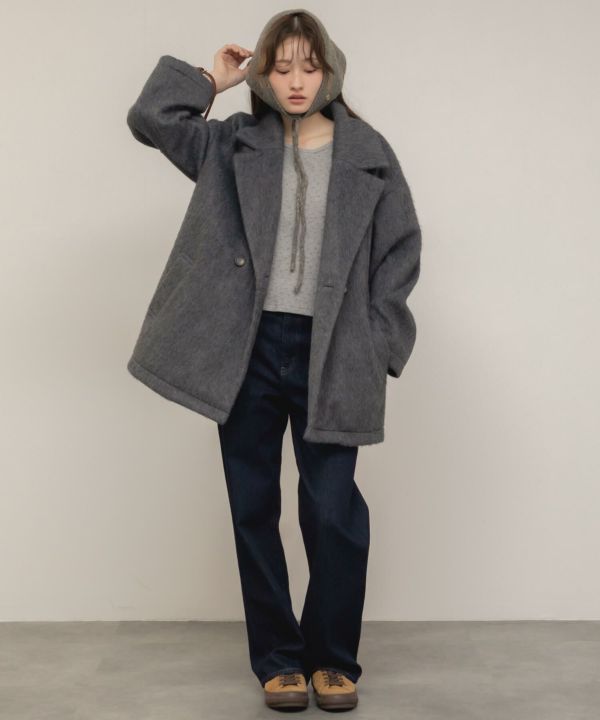 ノームコア派には、ワイドデニム×タートルニット×オーバーサイズコートで、
