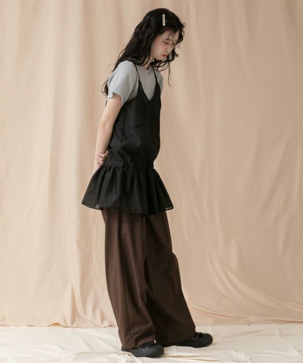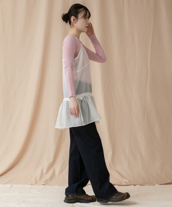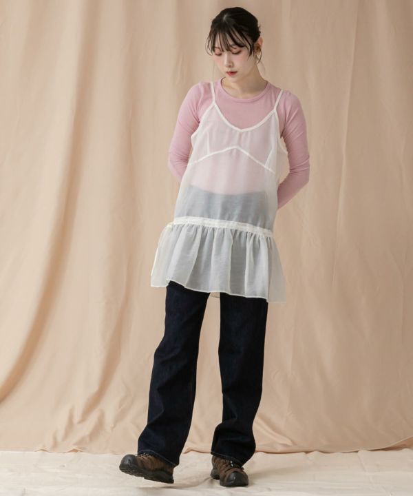 チュール素材を贅沢に使用したチュニック丈のキャミソールトップス。
