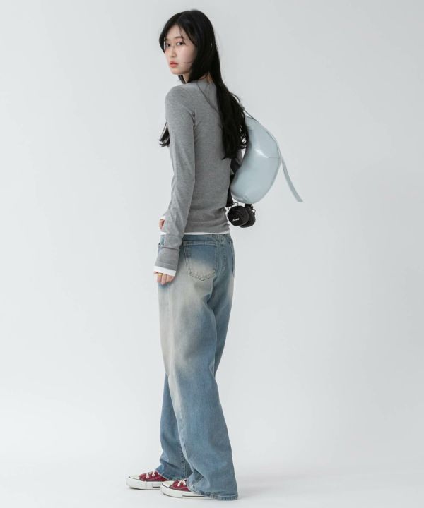 重ね着なしでレイヤードスタイルが完成 Henry Neck Long Sleeve Layered Cutsew
