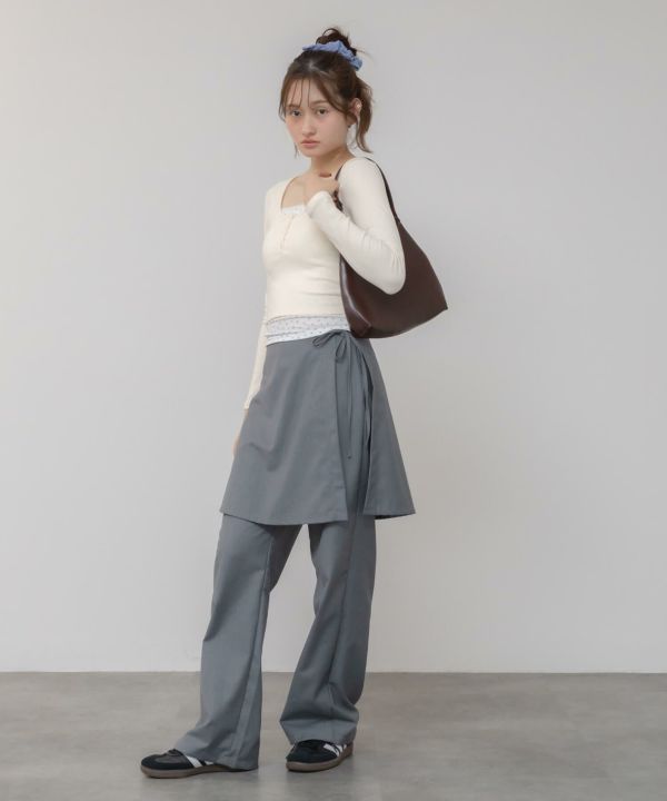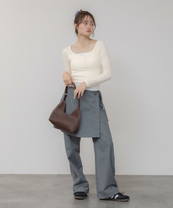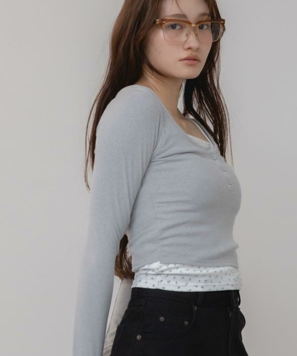 1枚でレイヤード風コーデが叶うヘンリーネックカットソー Layered Henley Cutsew