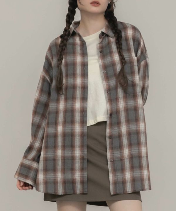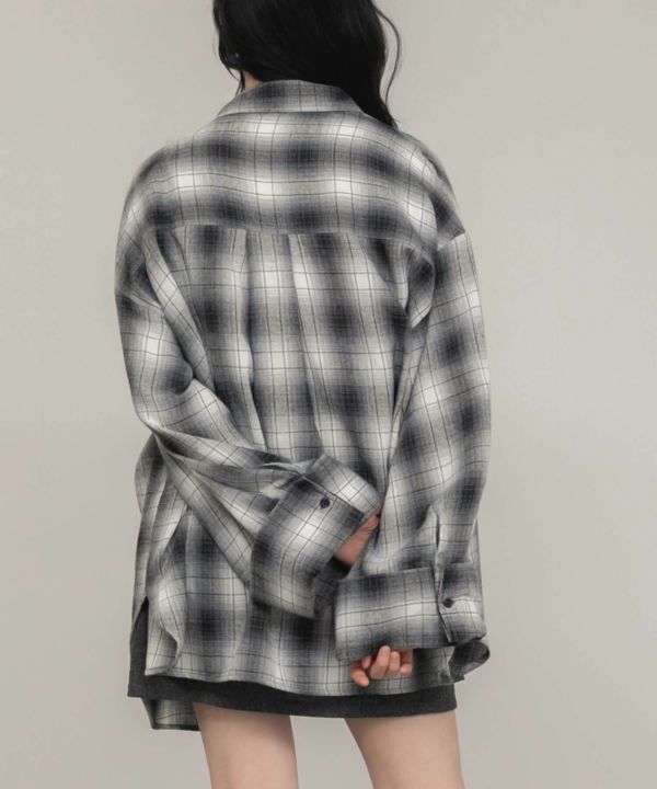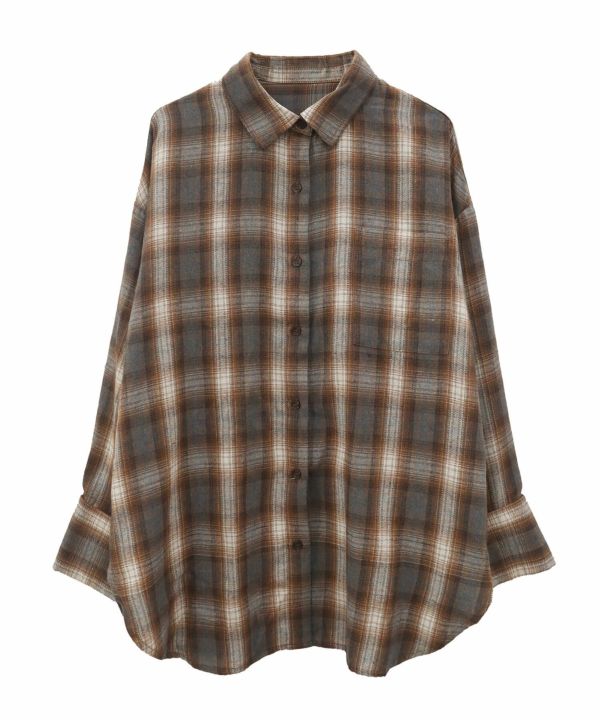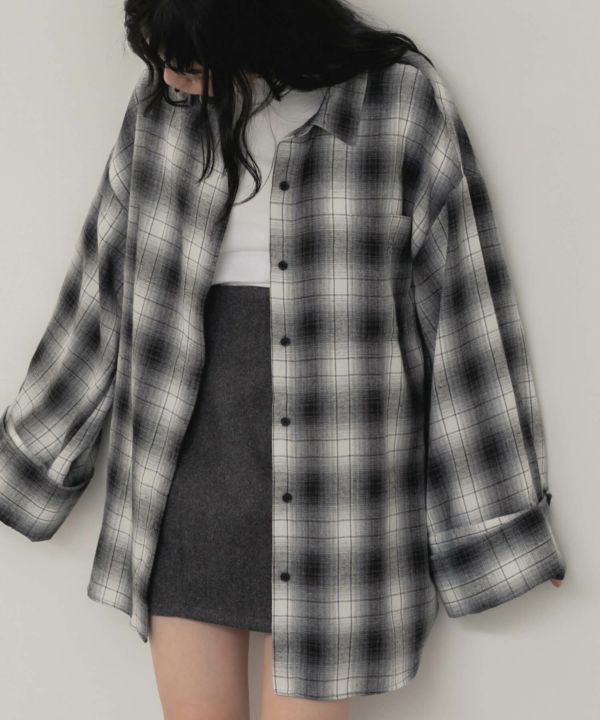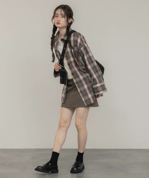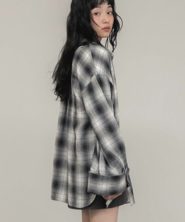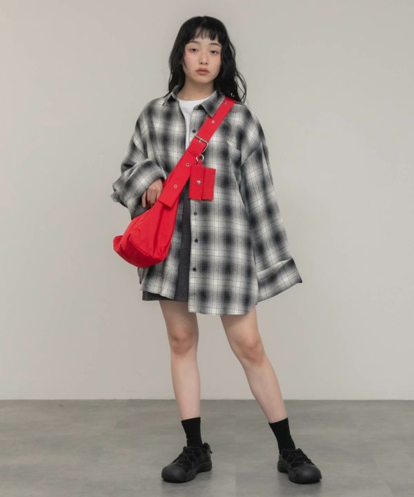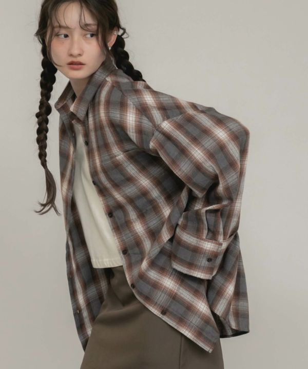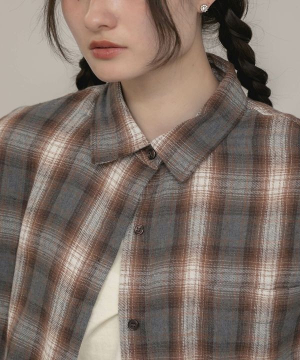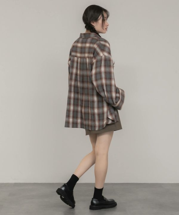 ワイドスリーブが特徴のチェックシャツ。