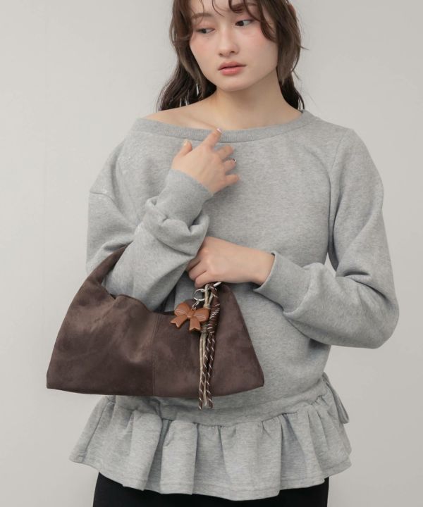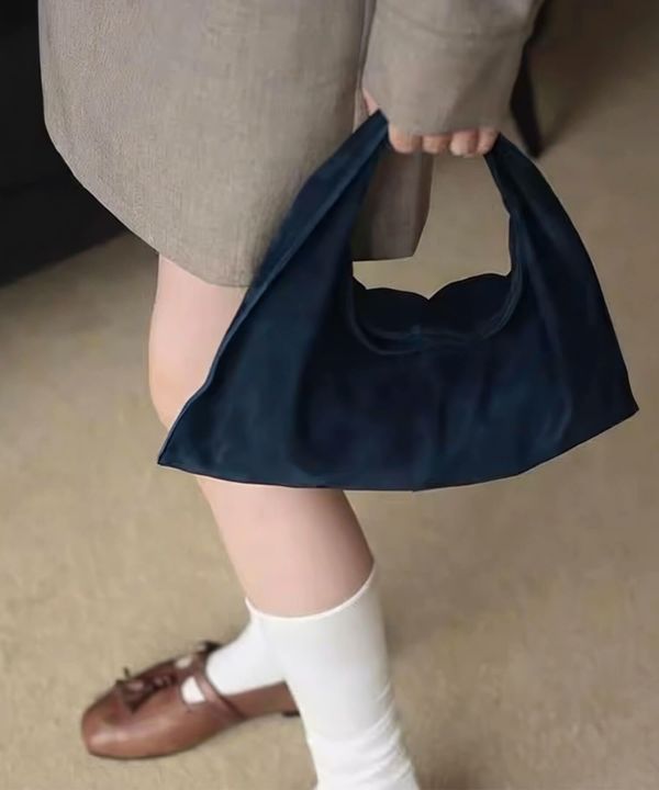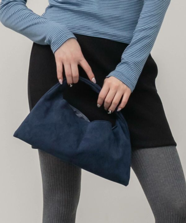 ころんとした台形フォルムが印象的なハンドバッグ。