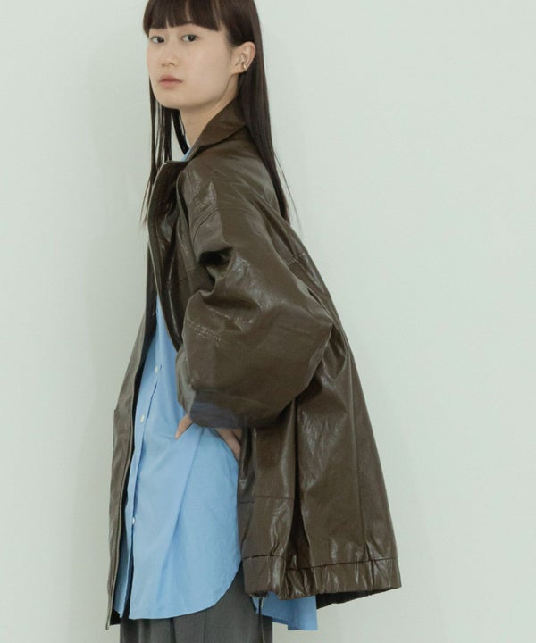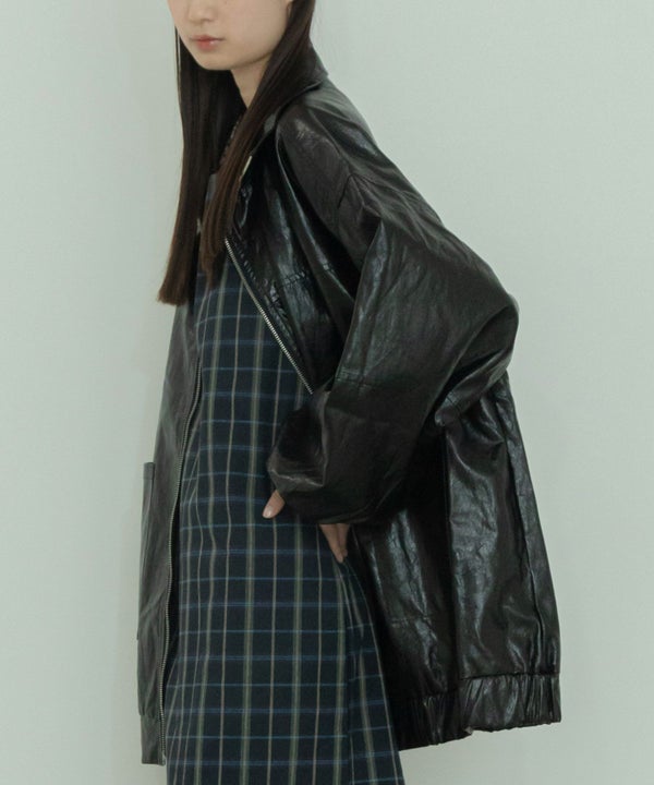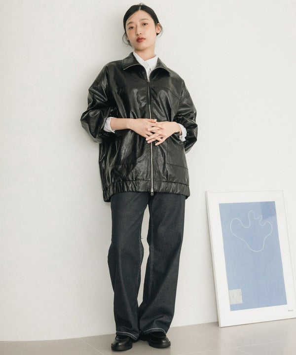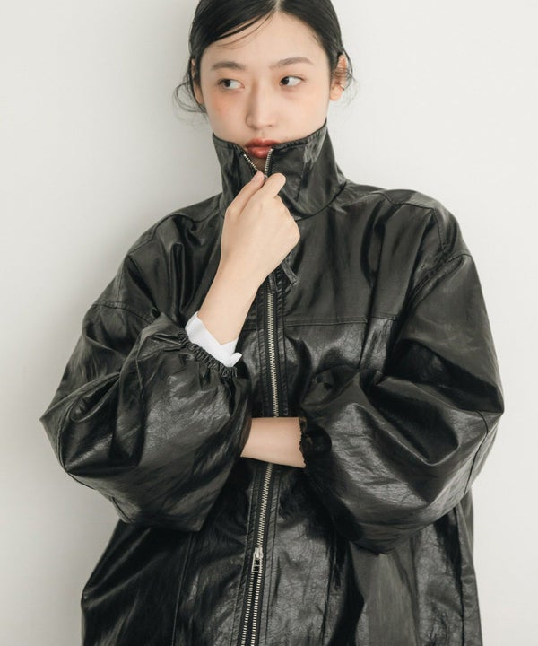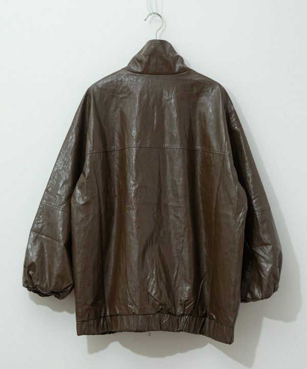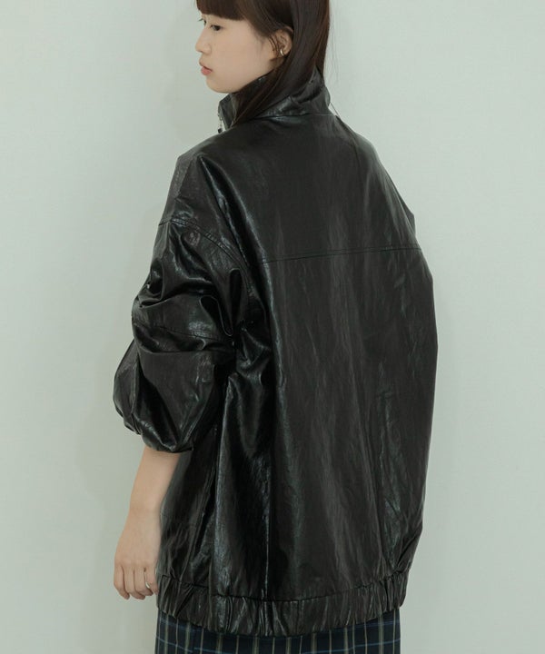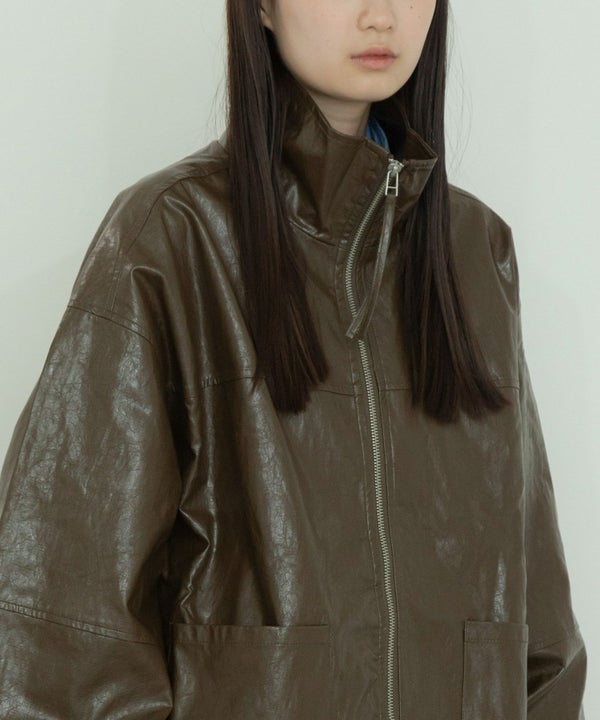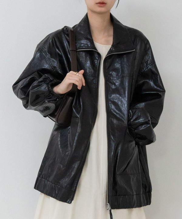 ヴィンテージ感のある雰囲気に仕上げたフェイクレザーブルゾン Vintage Like Fake Leather Stand Blouson