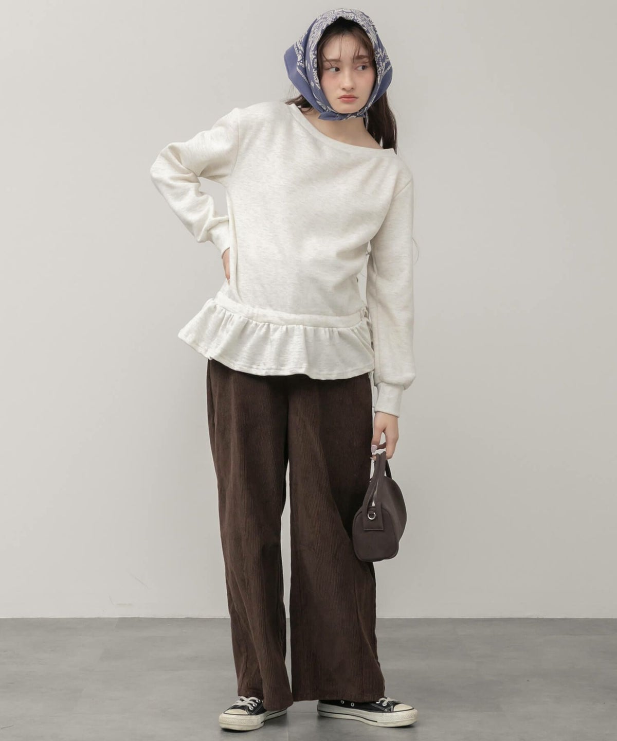 他の画像を見る さりげなく表情が生まれるオフショルスウェット Off Shoulder Peplum Sweatshirt NEW ¥ 5,720 ¥ 4,976 税込 カートに入れる お気に入りに登録する