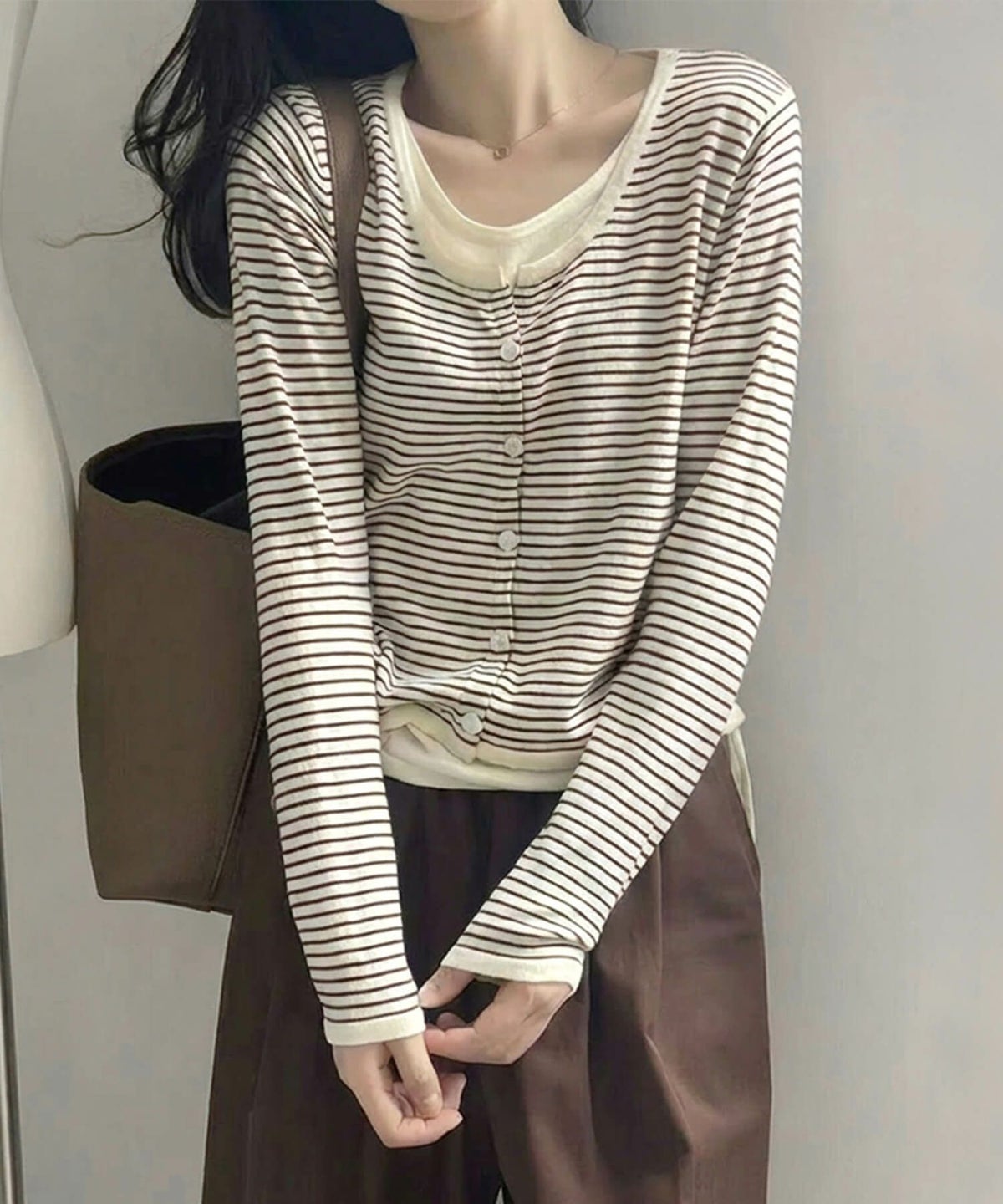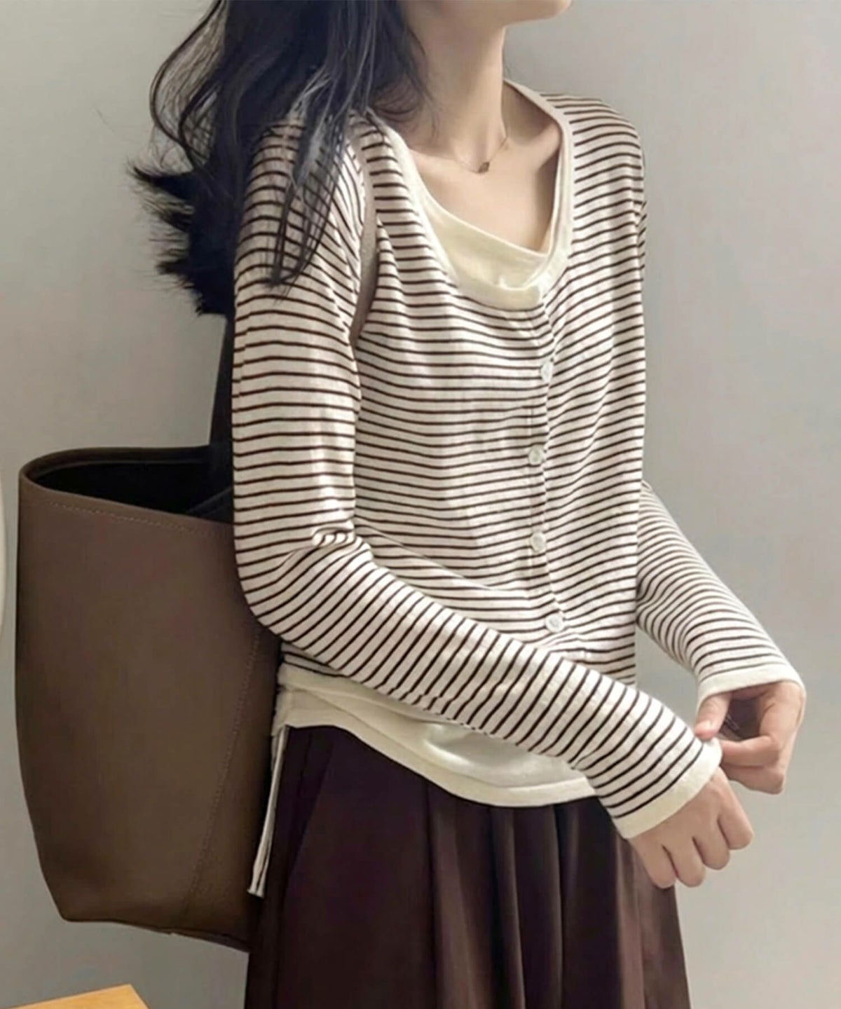他の画像を見る 一枚でレイヤード見えするボーダーカーディガン Layered Border Cardigan NEW SALE ¥ 4,400 ¥ 2,992 税込 カートに入れる お気に入りに登録する
