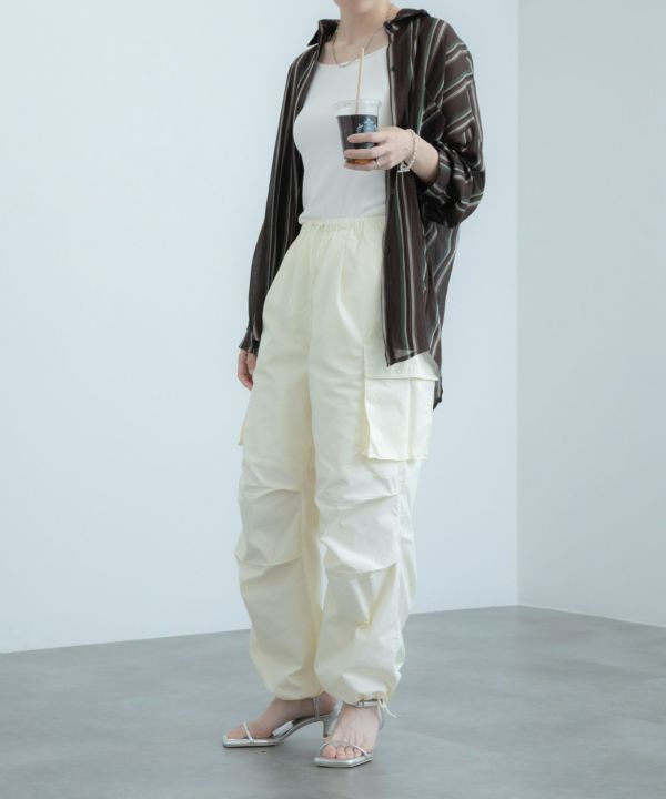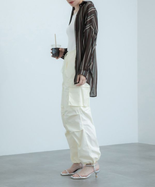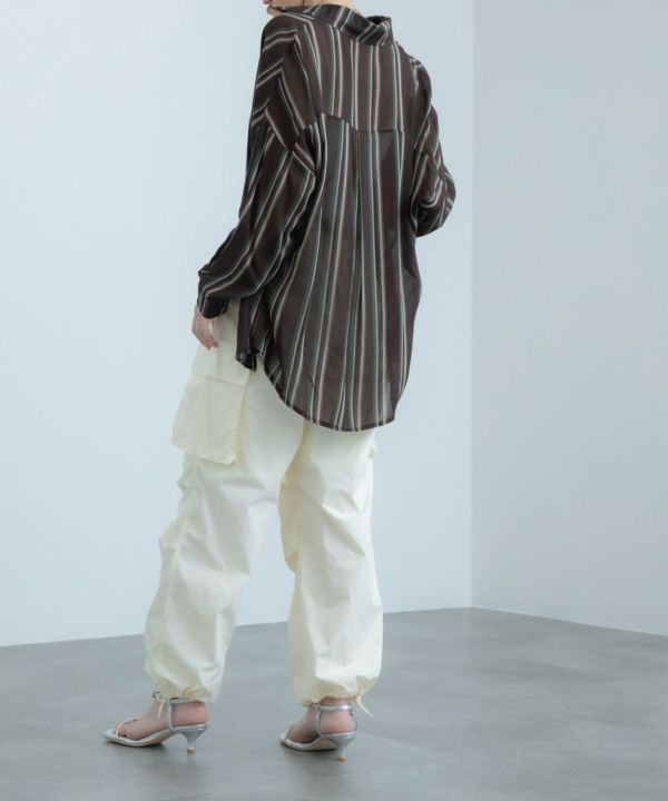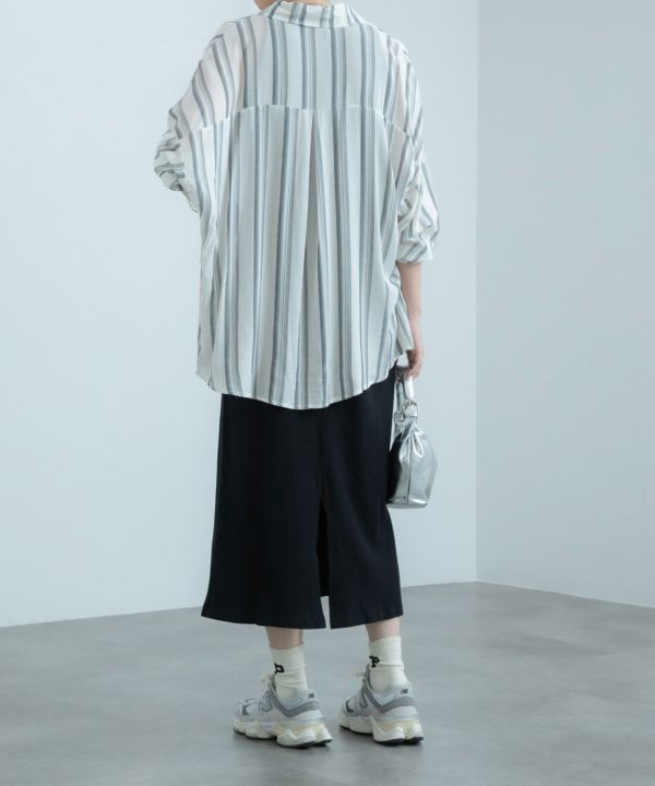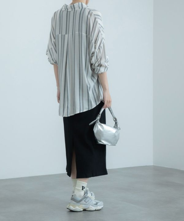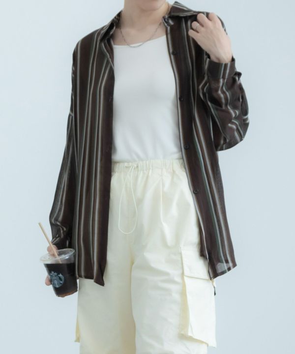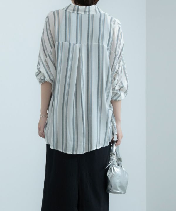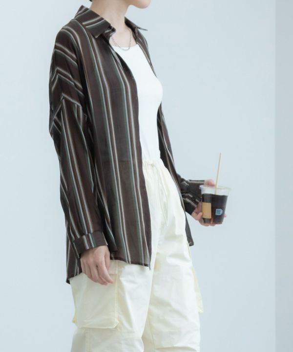 1枚で着るのはもちろん、羽織としても大活躍するストライプシャツ。透け感のある生地が軽やかな印象で、タックインをしてもすっきり着こなせます!デニムと合わせたカジュアルなスタイリングとの相性が抜群です。