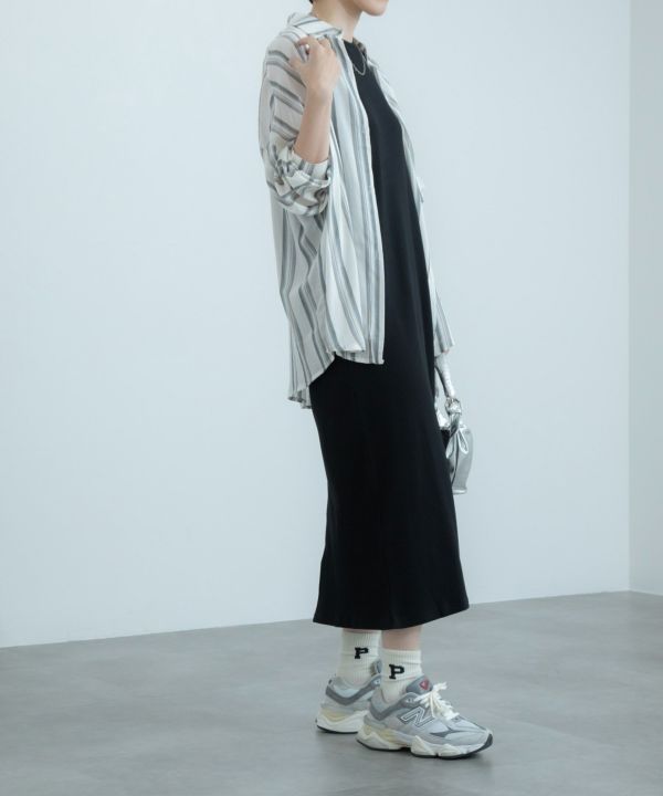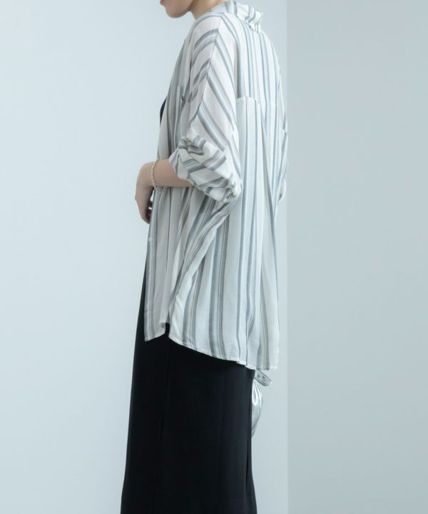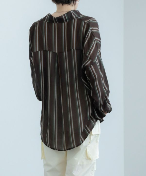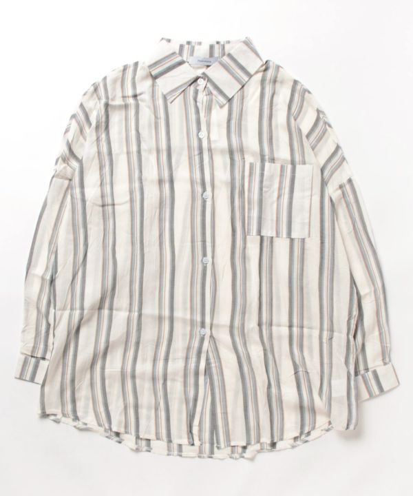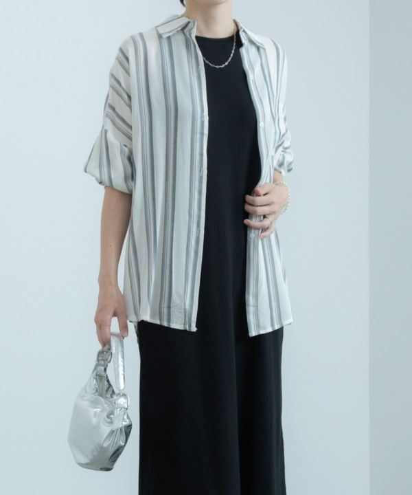 ゆったりめなサイズ感で1枚で着用するのはもちろん、羽織としても大活躍する1枚です。シンプルすぎず派手すぎないマルチストライプーがデイリーに取り入れやすさ◎