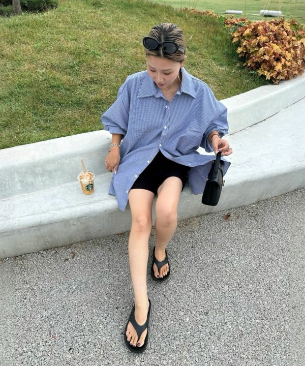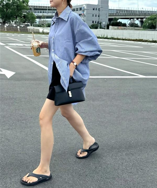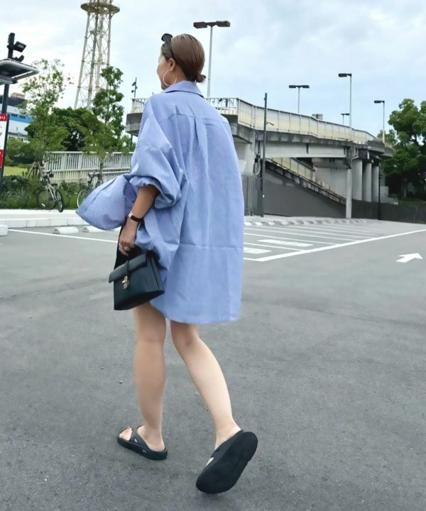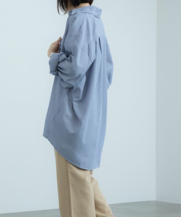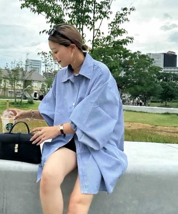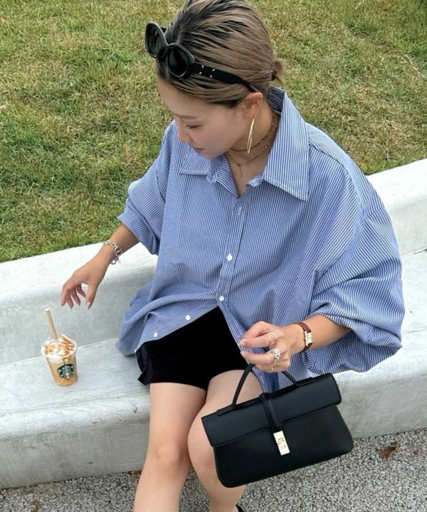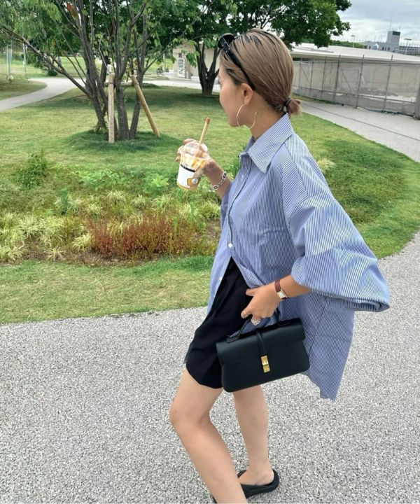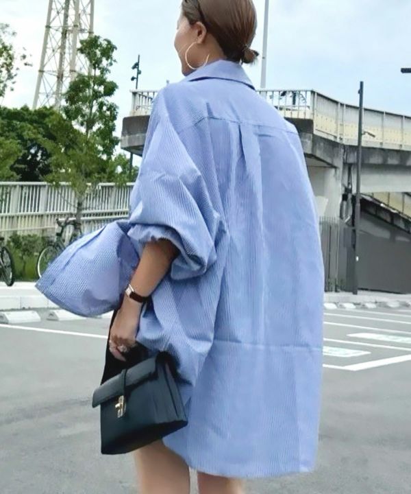 服の中で身体が泳ぐゆるっとしたシルエットが旬なストライプシャツ。