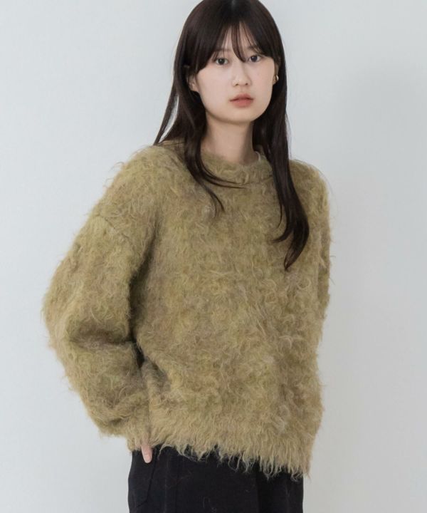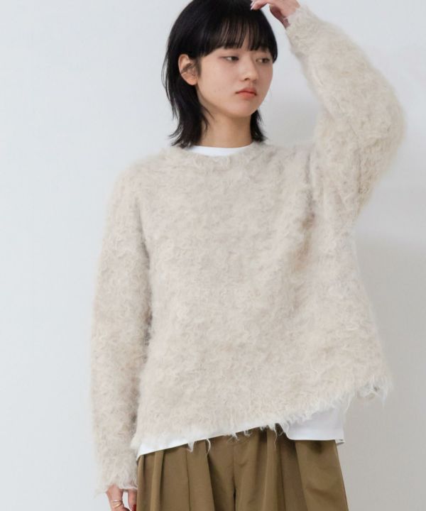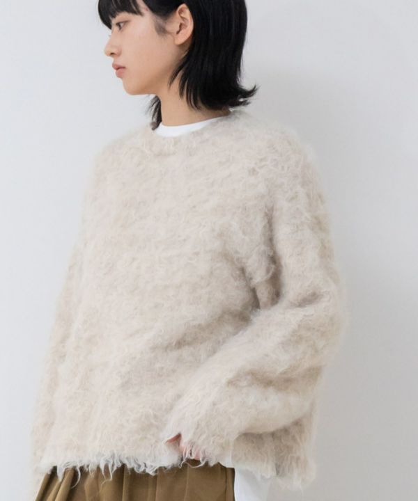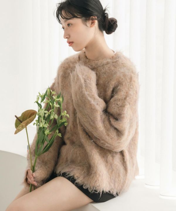 毛足の長いシャギー素材がふんわりと包み込むプルオーバー。