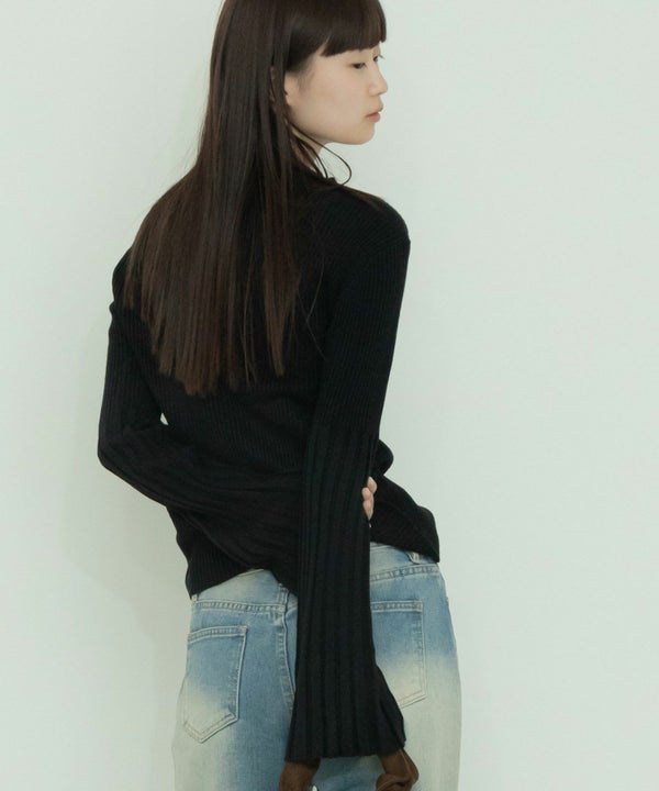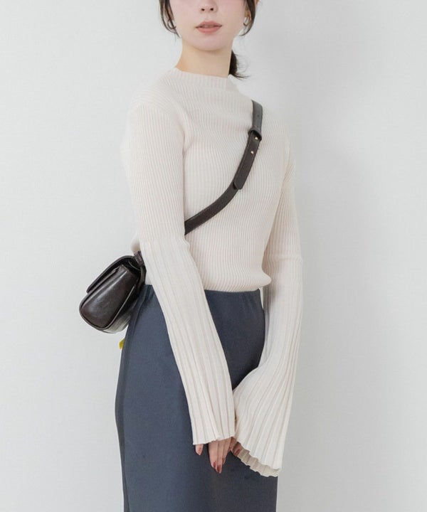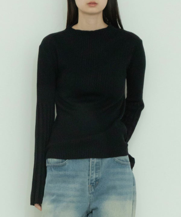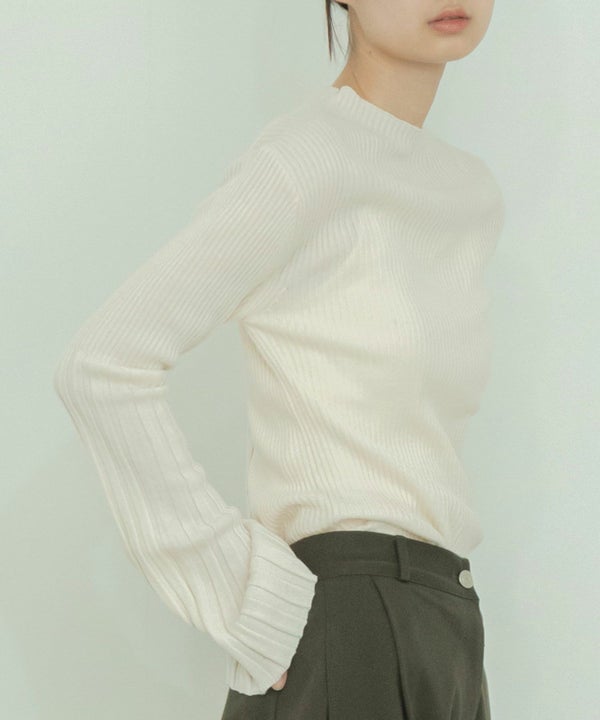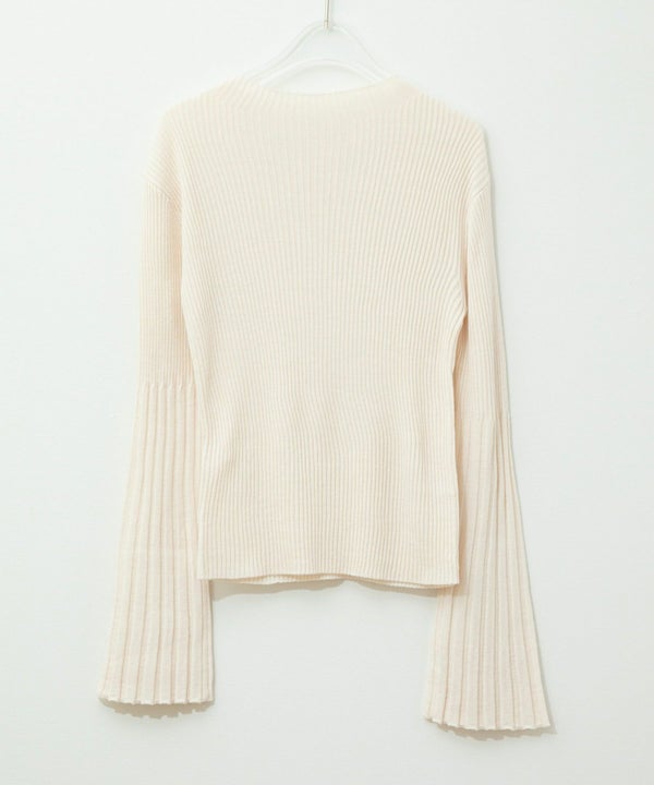 シンプルなクルーネックになだらかに繋がるフレアスリーブがポイント。