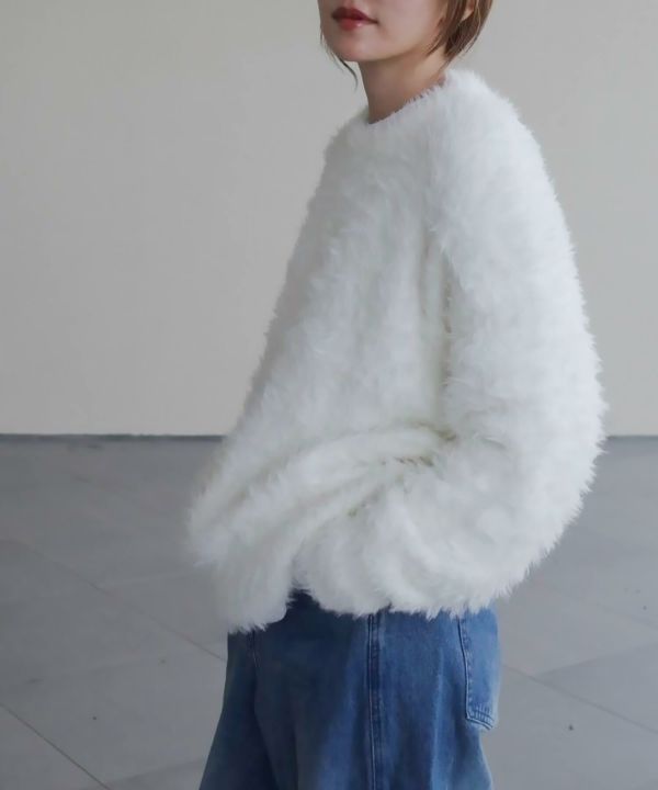 思わず触れたくなる、トレンドのふわふわシャギーニット。
