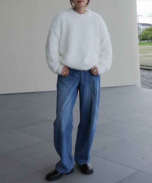 肌触りの良い柔らかで毛足の長いフェザーニット。