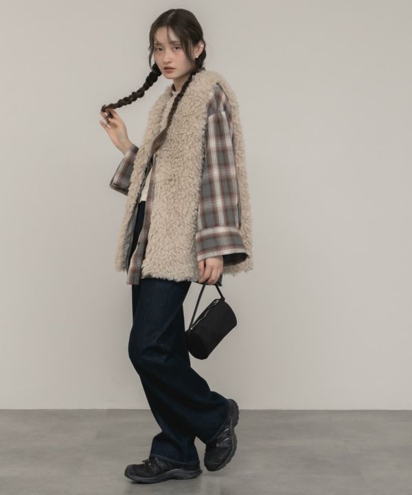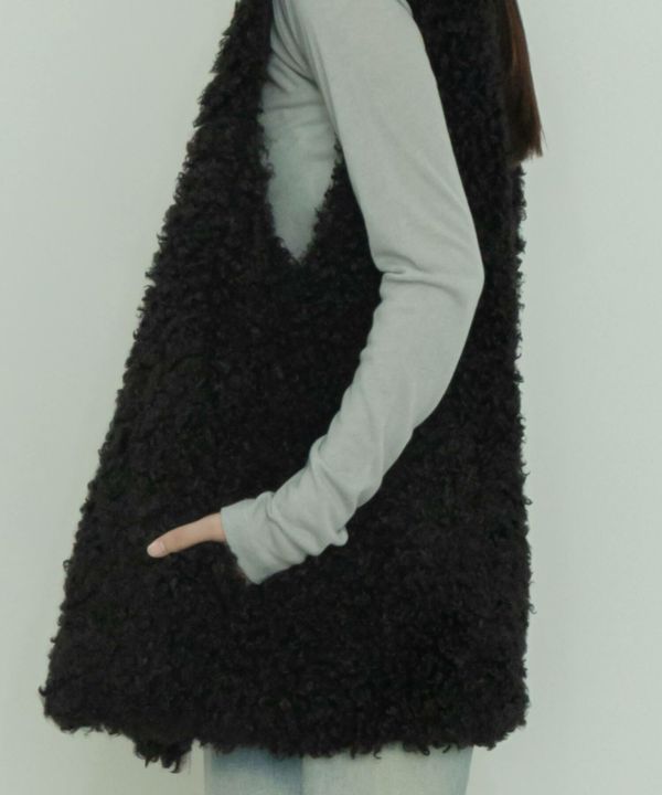 くるくるとしたカーリーな毛足のフェイクファーで存在感がありながらも上品な印象に。