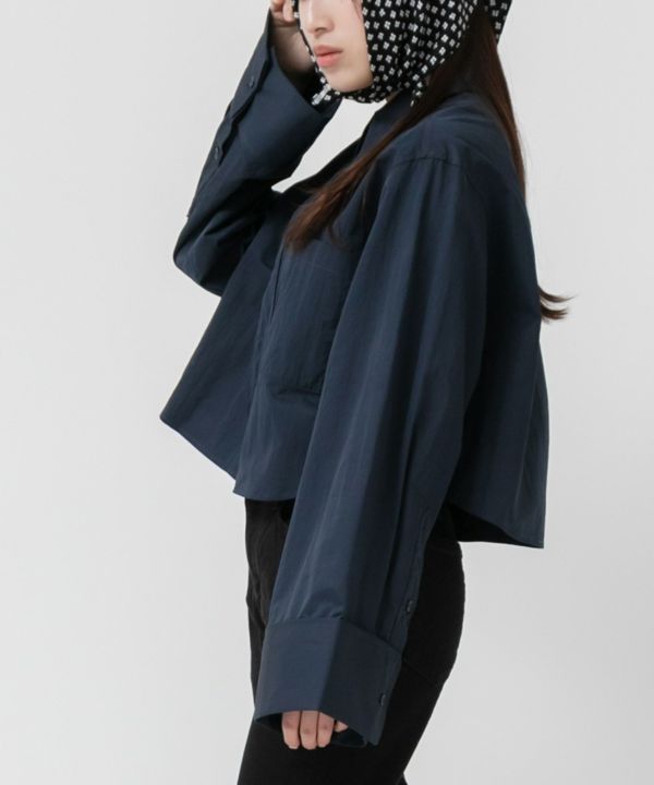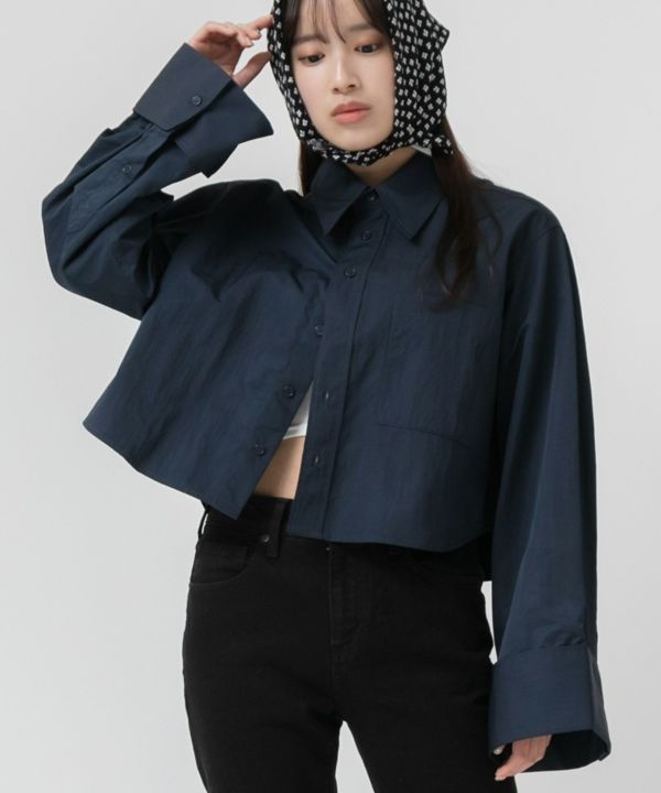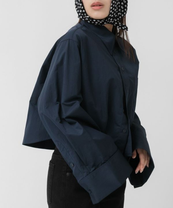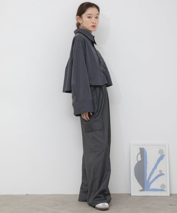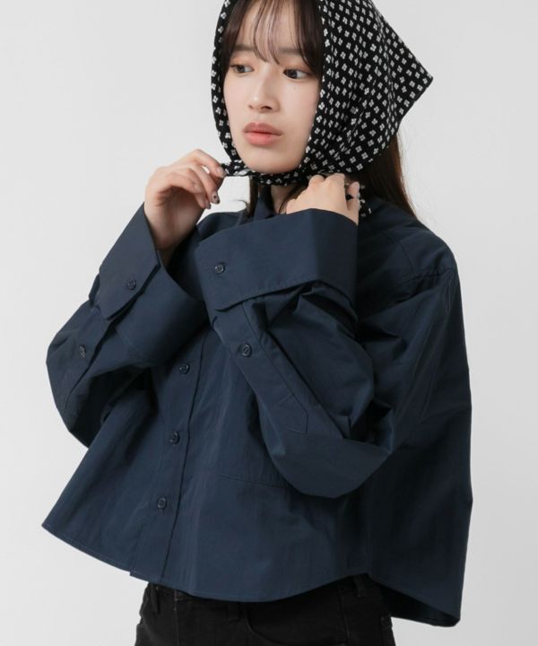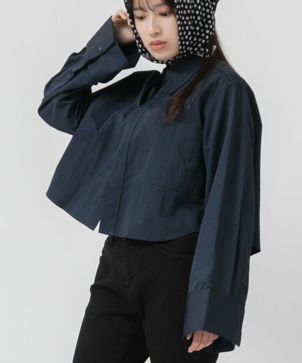 定番のシャツに遊び心をプラスしたビッグシルエットが特徴的なクロップドシャツ。