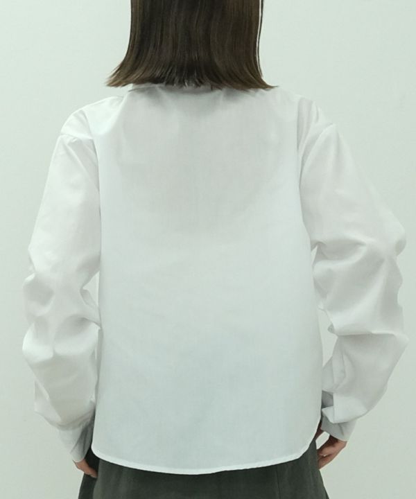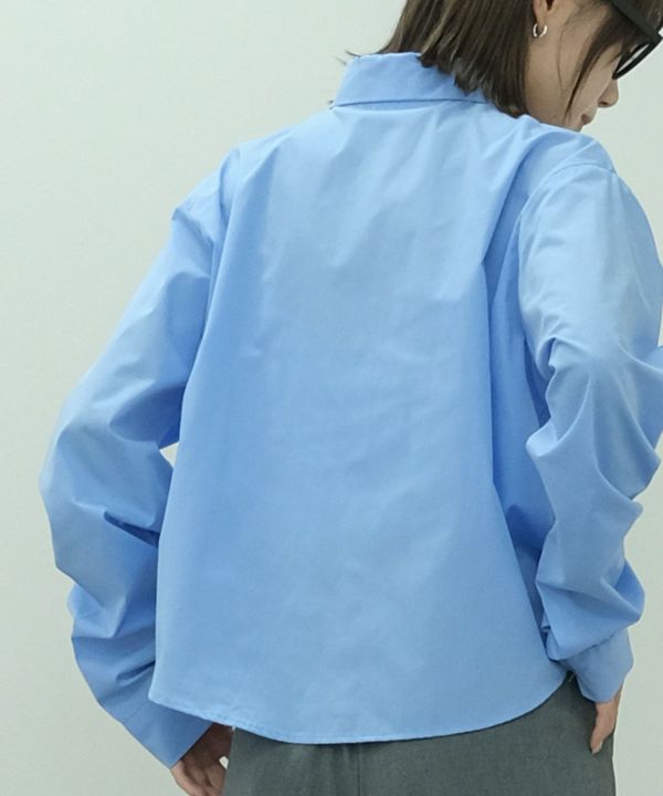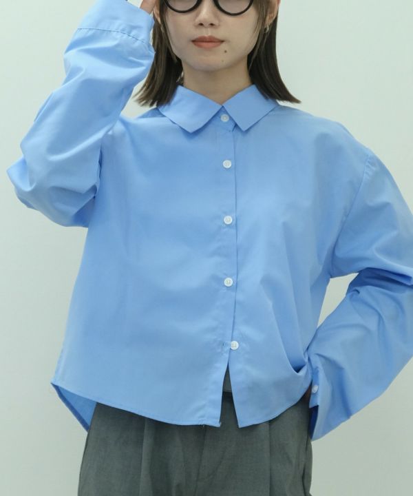 程よい張り感があるサラッとした素材を採用した、通年で着られるシャツブラウス。