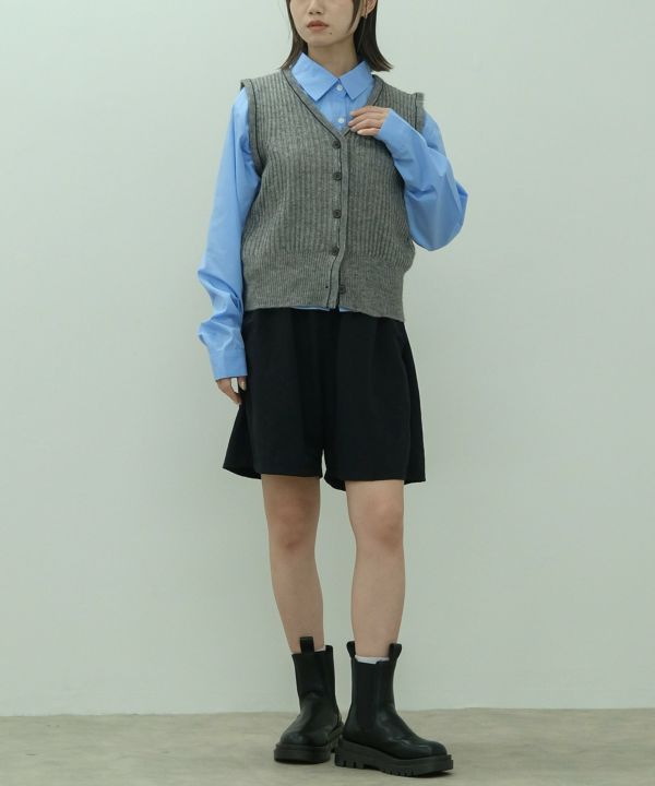 定番のデニムはもちろん、今季はスラックスやミニ丈ボトムスと合わせたスタイリングがオススメ。