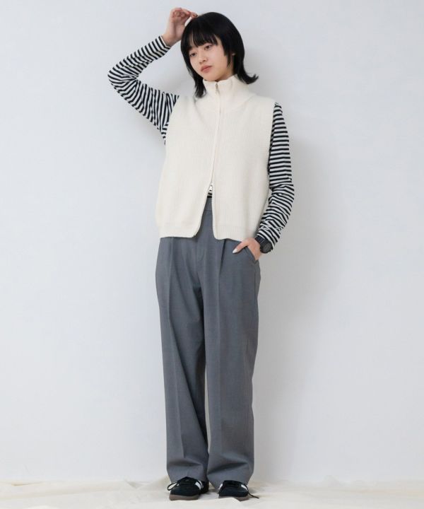 今年らしい季節感を取り入れたコーディネートに仕上がるニットベスト。