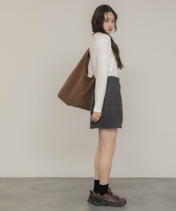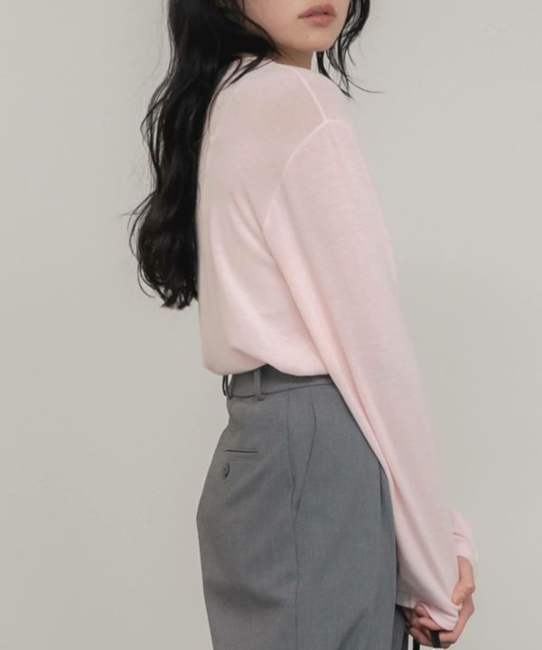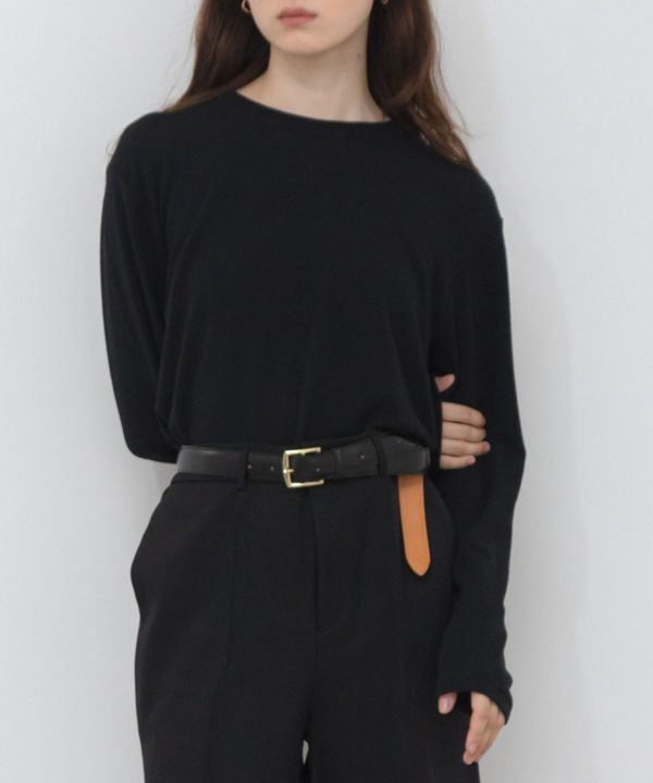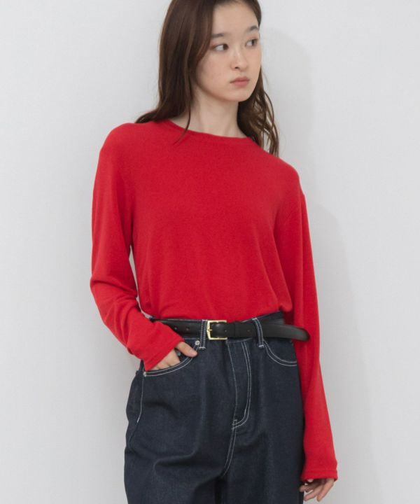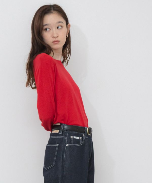 ロンTのように合わせるボトムを選ばない万能アイテムですが絶妙な空き具合のネックラインとしなやなかニット素材がカジュアルにもきれいめにも合わせやすいアイテムです。