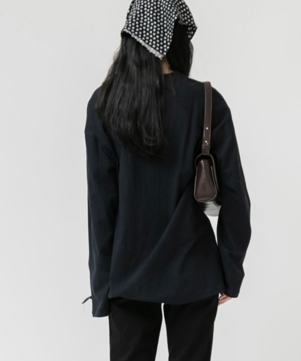 厚すぎず薄すぎない使いやすい素材感なのでワイドパンツのときは前だけタックインすればスタイルアップもでき、Iラインのスカートでルーズに着るのも◎
