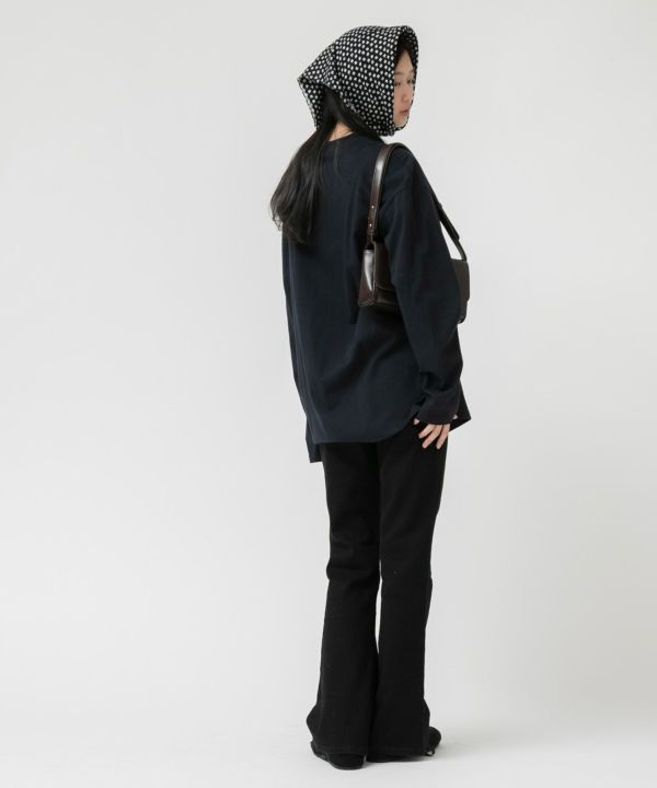 1枚でサラッと着るのはもちろん、ビッグシルエットながら程よくネックが詰まっているので冬場はスウェットやニットを合わせて首元からロンTを覗かせるレイヤードスタイルもおすすめです。