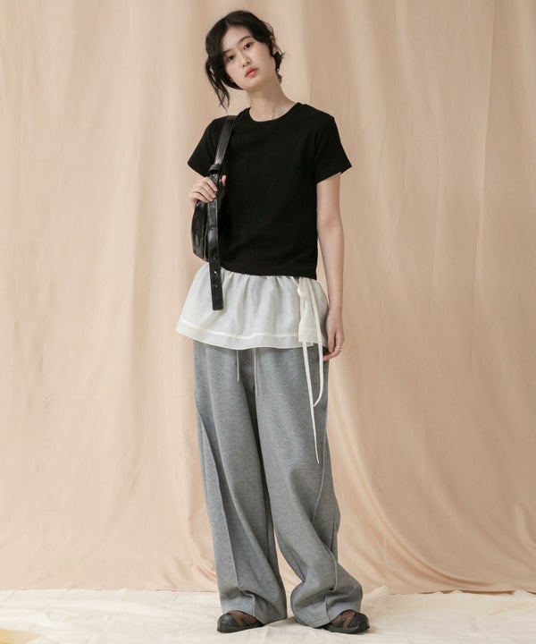 ボトムを選ばず、レイヤードもしやすい設計で、1枚でもインナーとしても活躍します。