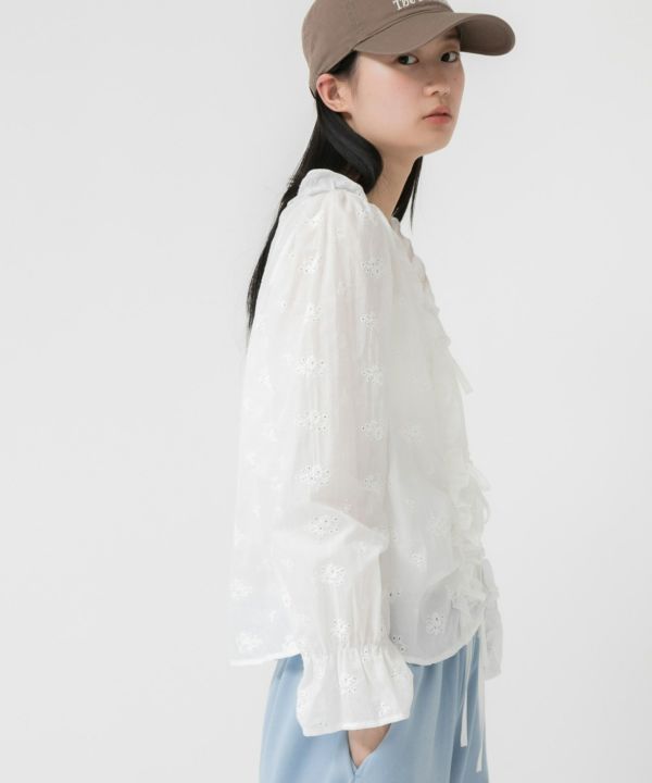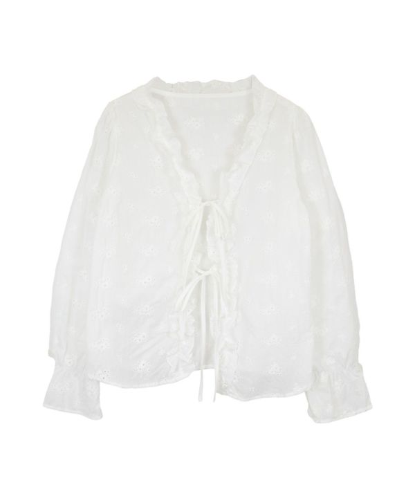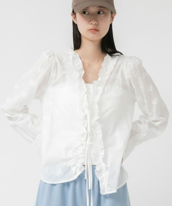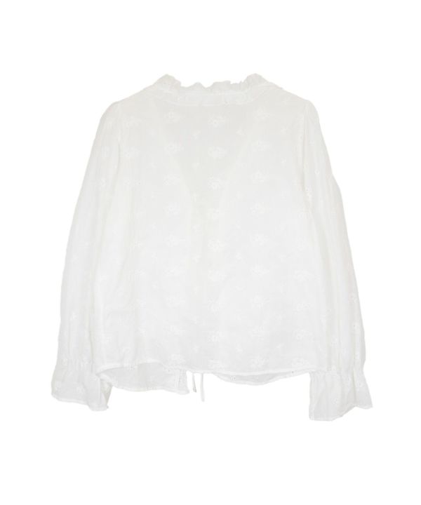 繊細なフラワーレース刺繍が施された、ヴィンテージ感のあるブラウス。
