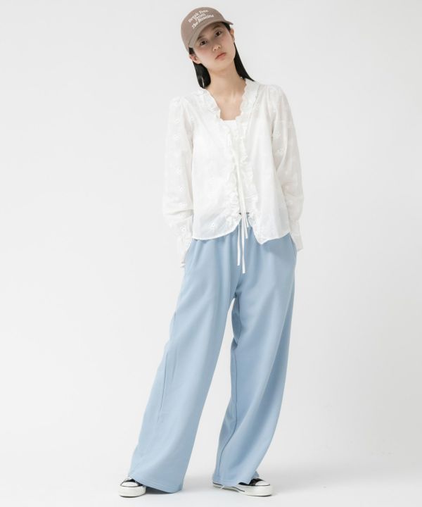 刺繍部分はさりげない透け感があり、軽やかな印象をプラス。