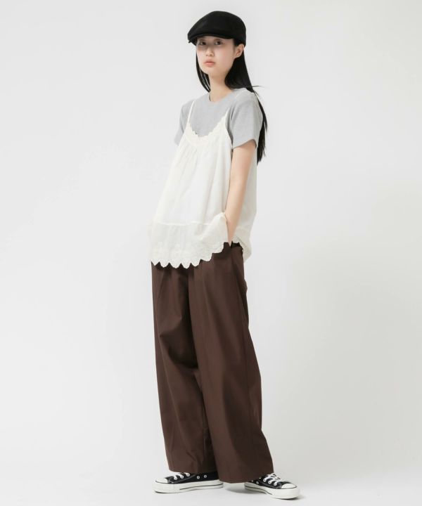 シアートップスやカーディガンを羽織ってレイヤードスタイルを楽しむのも◎