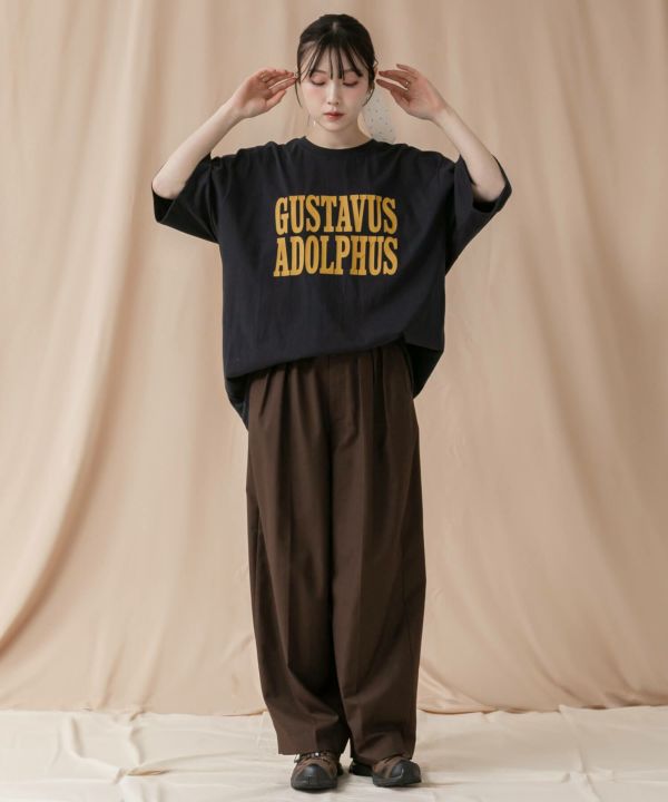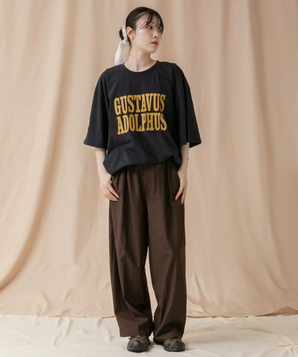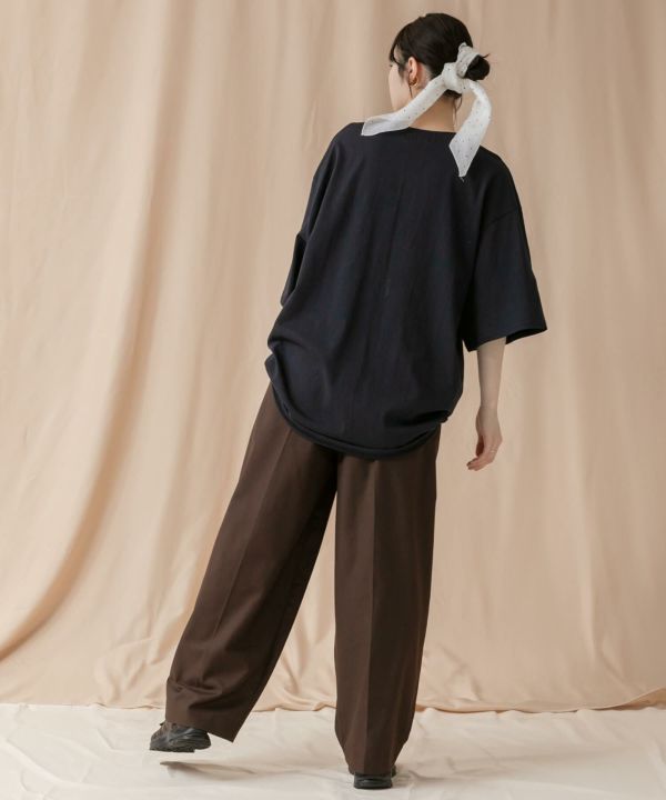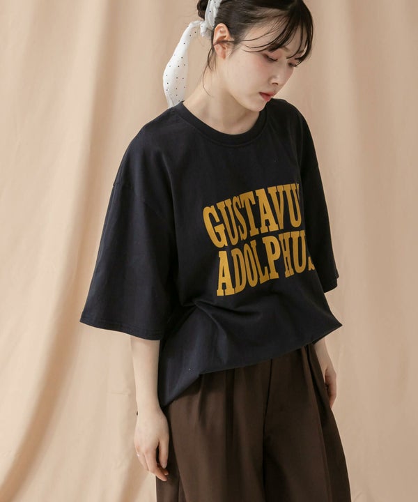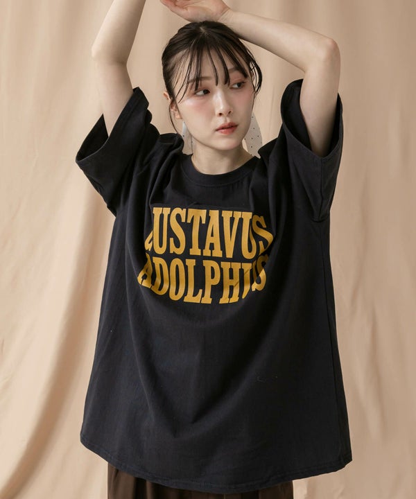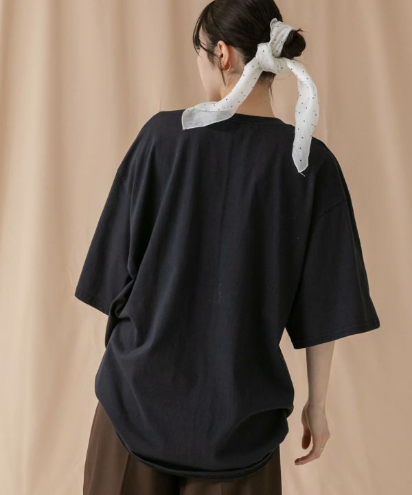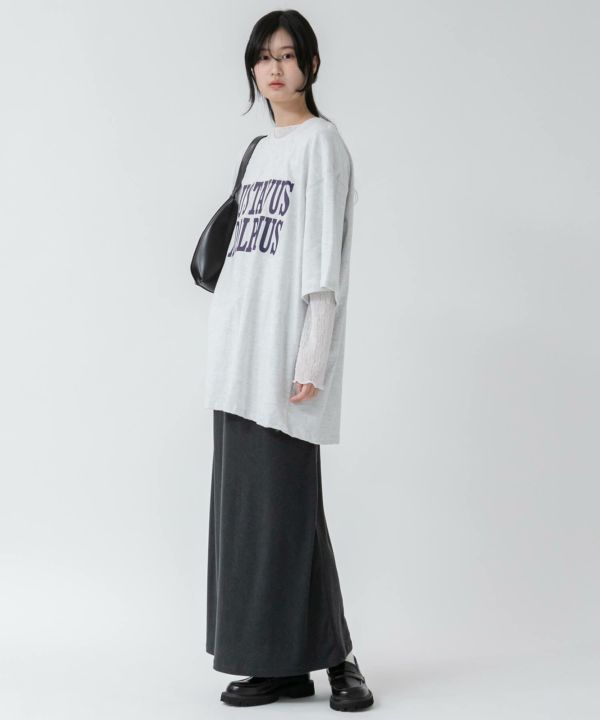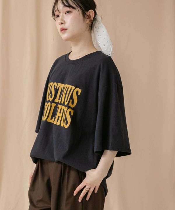 フロントに施されたロゴプリントが目を引くオーバーサイズTシャツ。