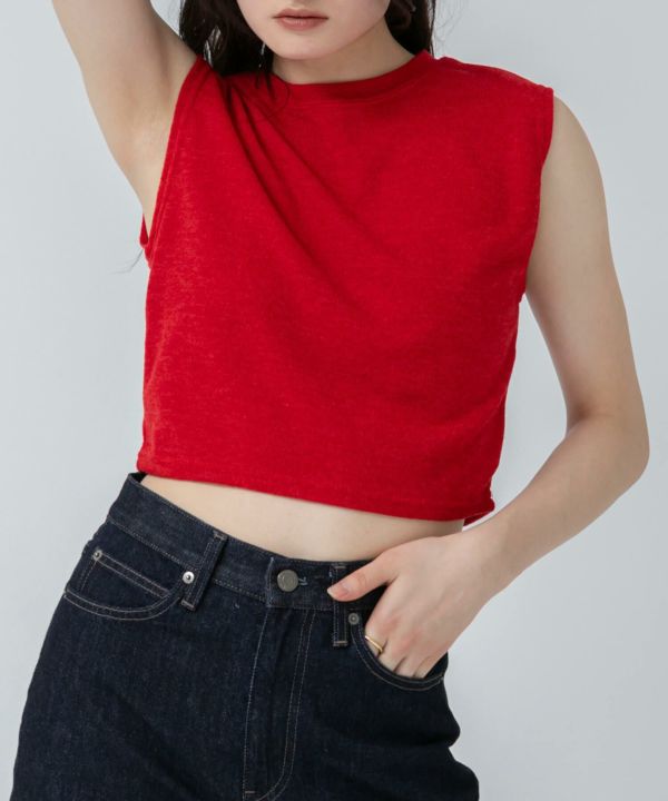 シンプルながらも程よい存在感のあるクロップド丈のタンクトップ。