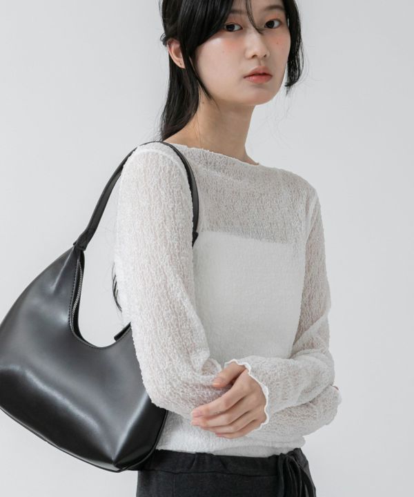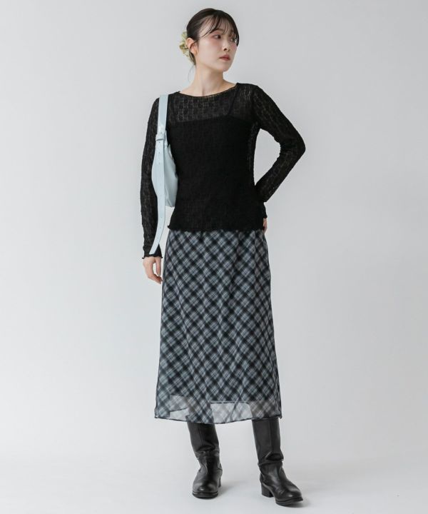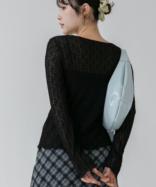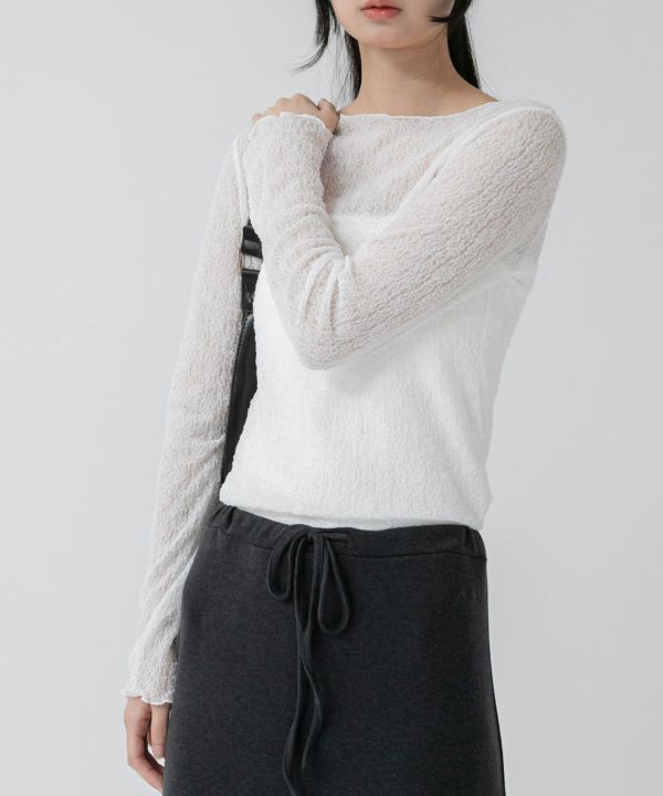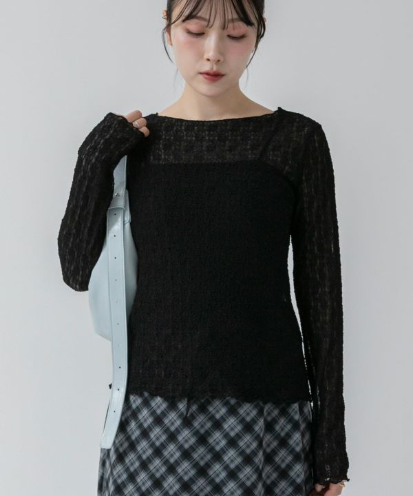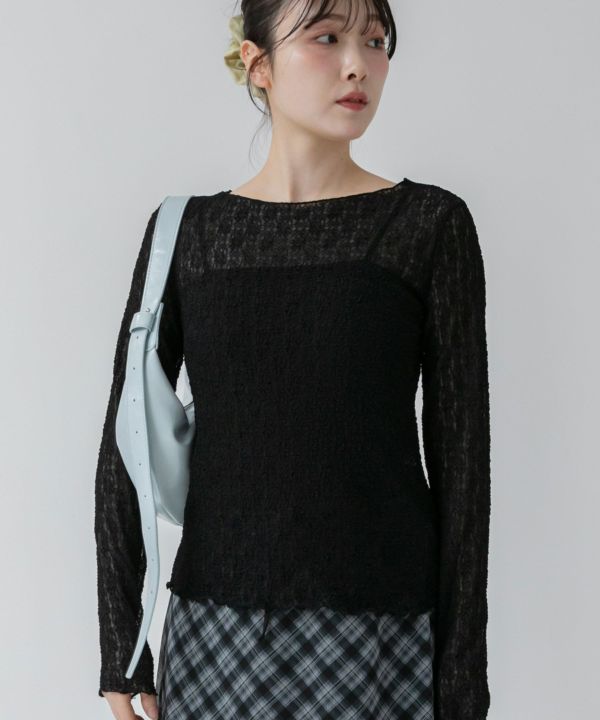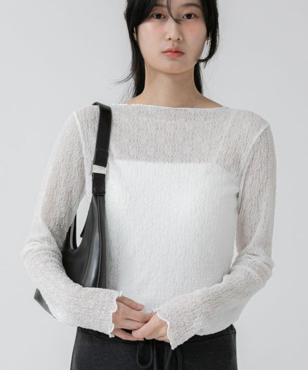 ほどよく透けるデザインが軽やかな印象を与え、レイヤードスタイルにも取り入れやすい一枚。