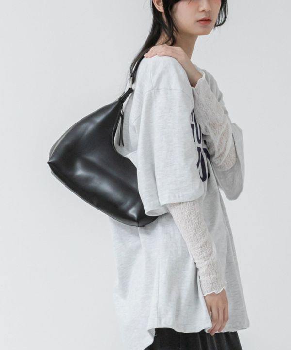 ボトムスは、定番のデニムパンツやナロースカートと合わせると、バランスの取れた旬なスタイルが完成。