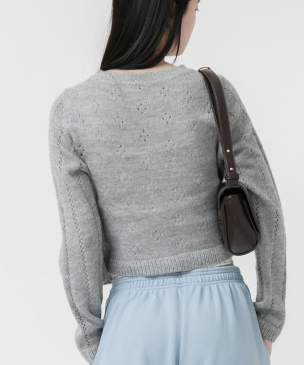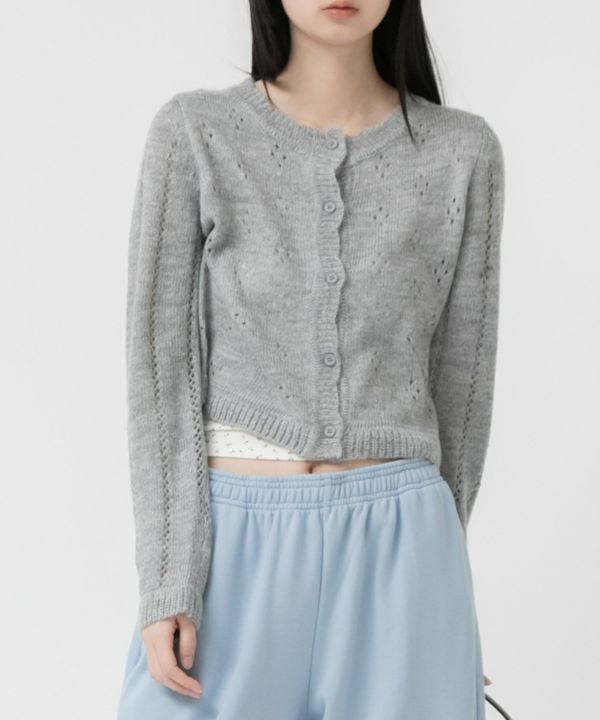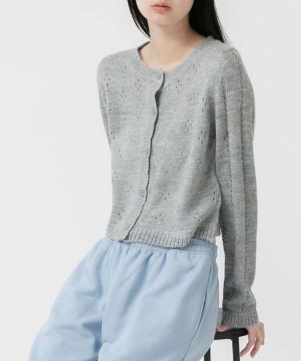 花柄のような透かし編みが大人ガーリーなカーディガン Flower Cutting Knitted Cardigan