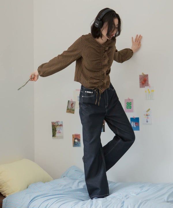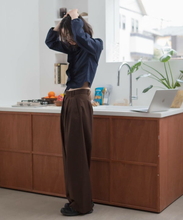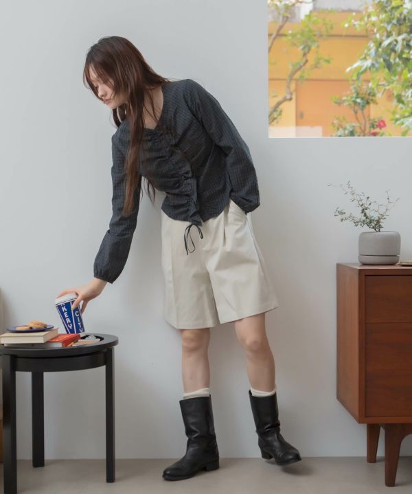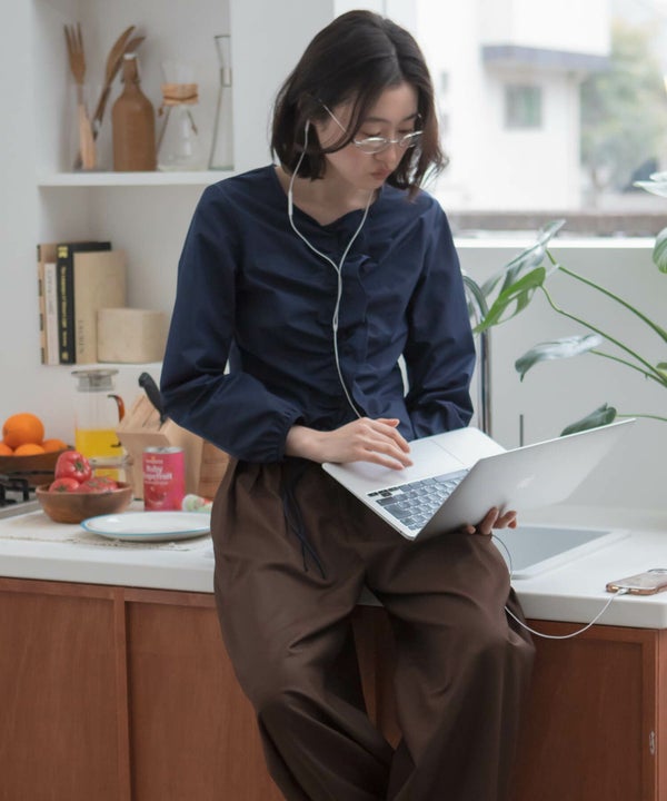 ウエスト部分はドロスト仕様になっており、きゅっと絞ってコンパクトに、ゆるめてナチュラルにとシルエットのアレンジが可能。