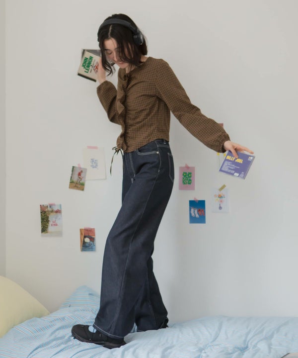 デニムやワイドパンツと合わせたラフな着こなしや、ミニ丈ボトムとのバランスコーデも◎