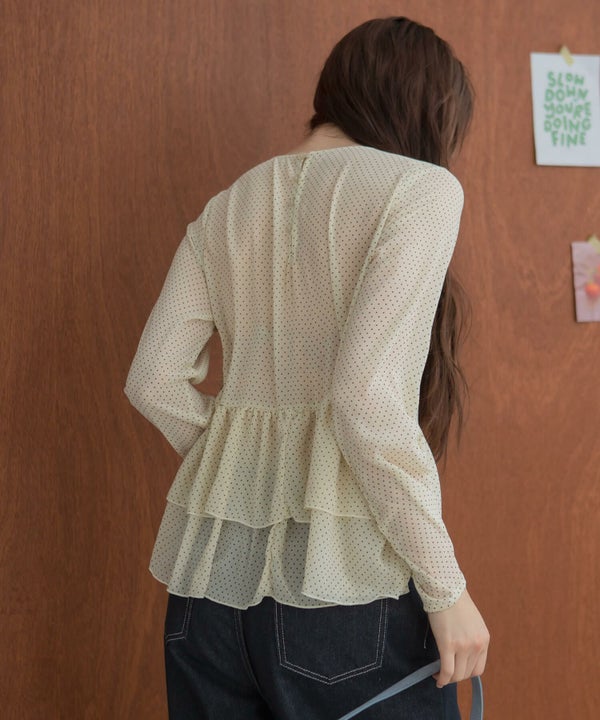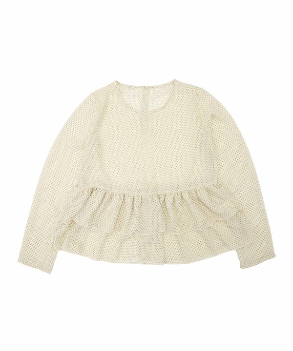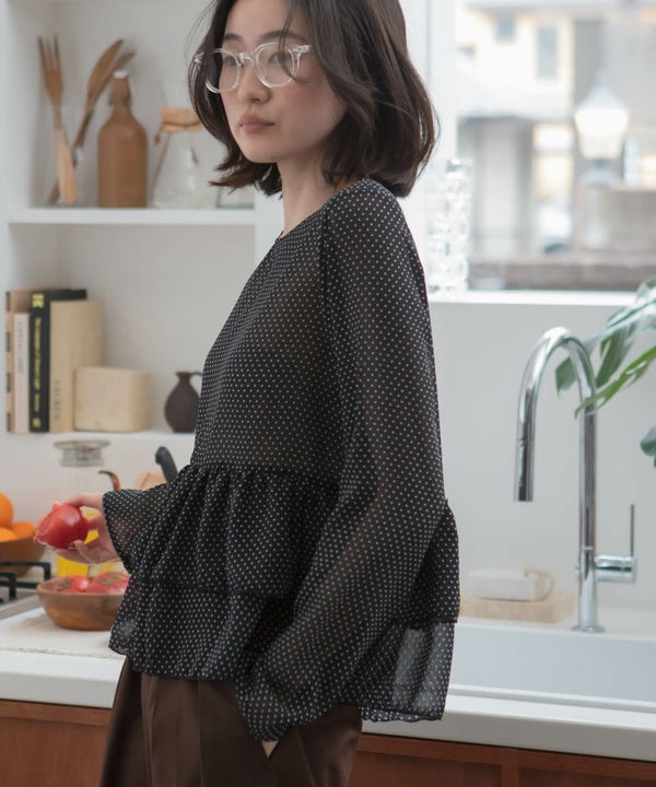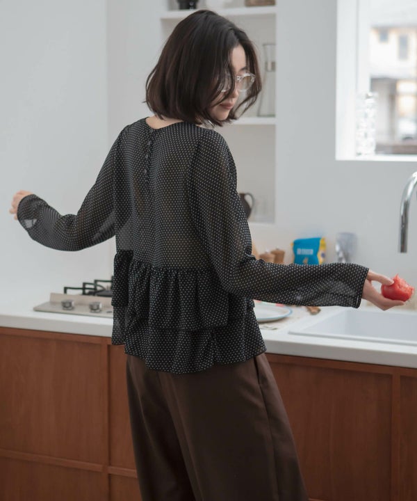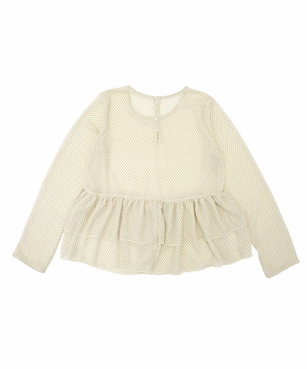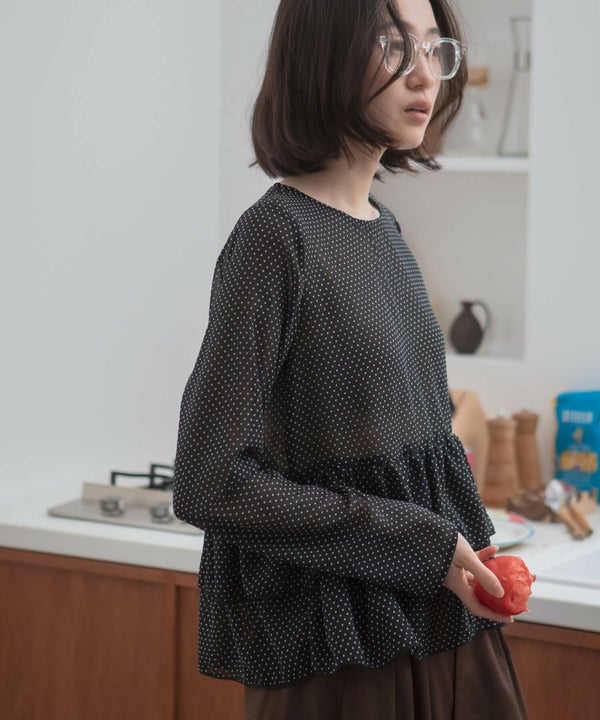 細かいドット柄が印象的な、シアー素材のぺプラムプルオーバー。