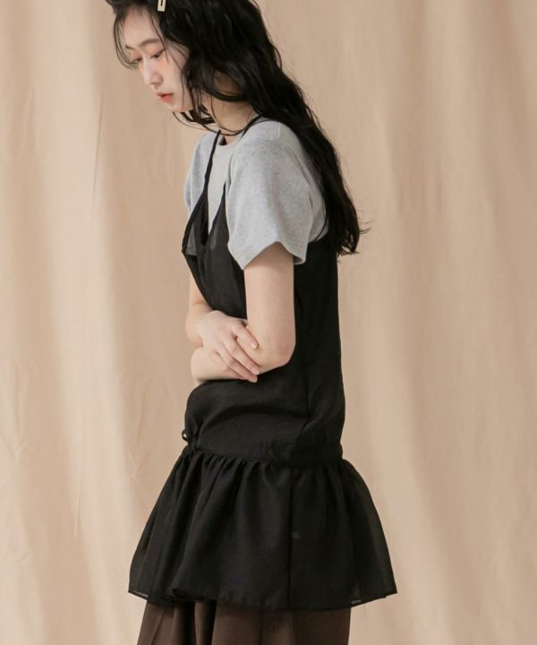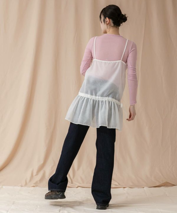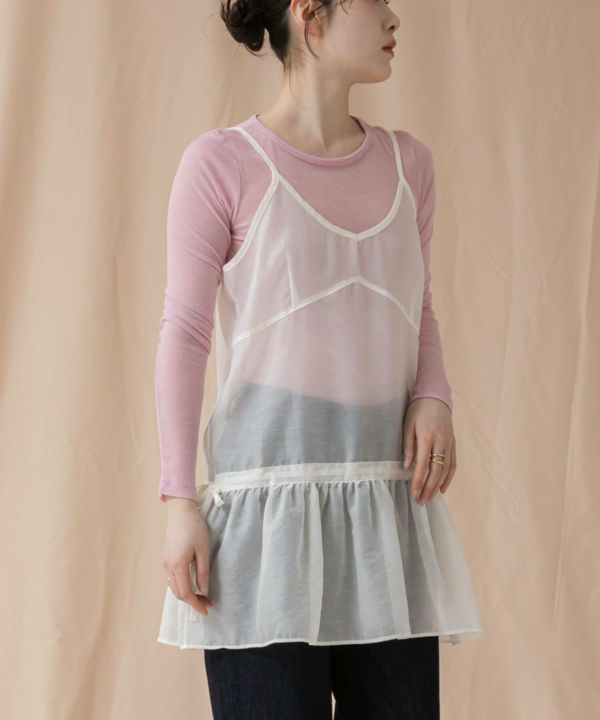 チュール素材を贅沢に使用したチュニック丈のキャミソールトップス。
